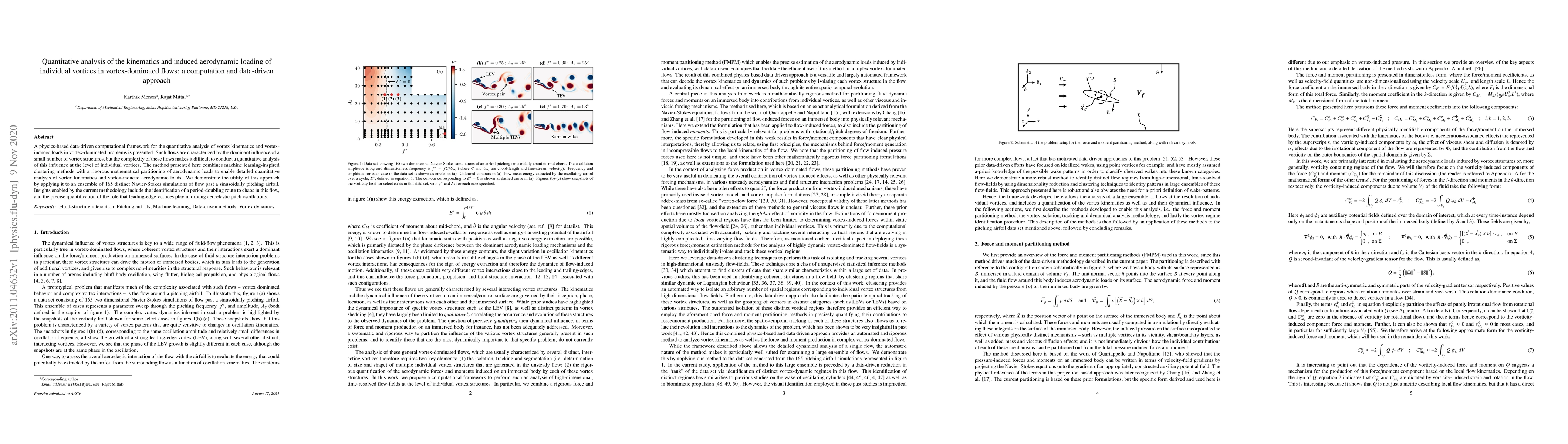 This research introduces a computational method combining machine learning and mathematical partitioning to analyze vortex kinematics and aerodynamic loads in complex vortex-dominated flows. Applied to airfoil simulations, it reveals insights like a period-doubling route to chaos and the significant role of leading-edge vortices in aeroelastic oscillations.