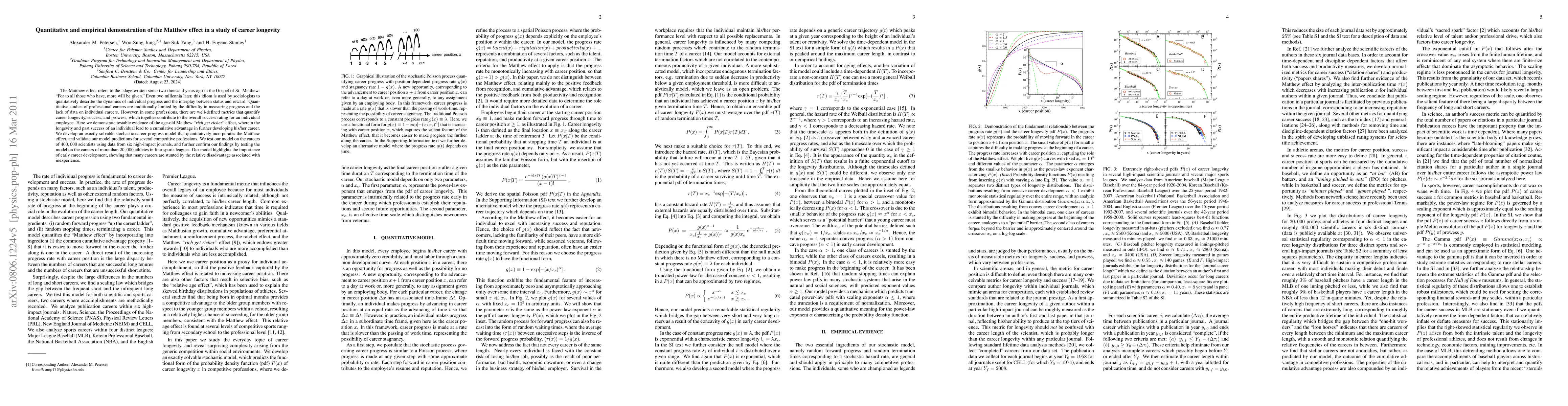 This study quantitatively demonstrates the Matthew effect in professional careers, showing that individuals with greater past success and longevity accumulate further advantages. The research validates a stochastic model across 400,000 scientists and over 20,000 athletes, emphasizing the importance of early career development.