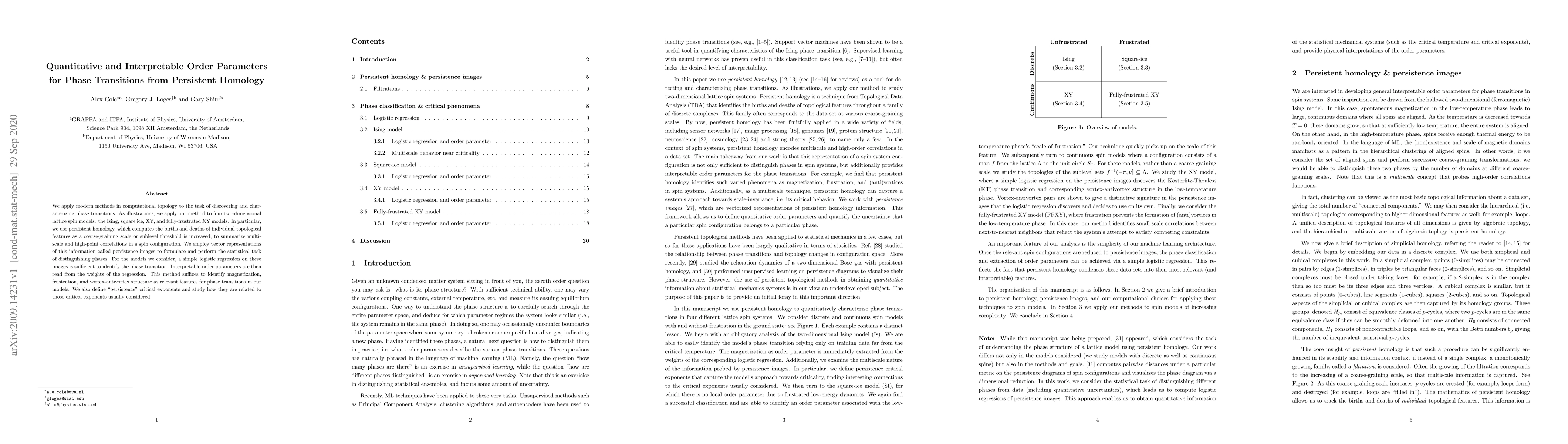 Researchers used computational topology to identify phase transitions in lattice spin models, extracting interpretable order parameters through persistent homology and persistence images.