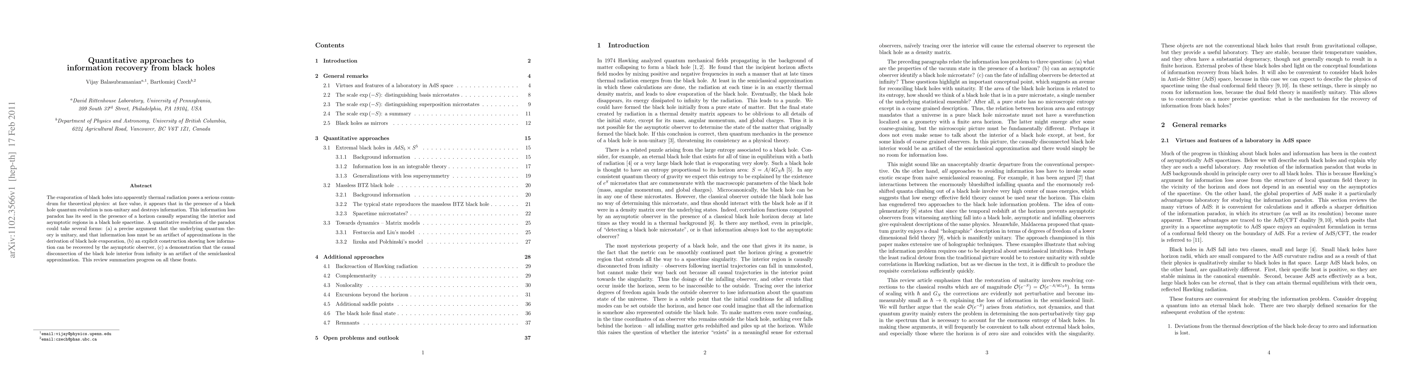 This paper reviews quantitative approaches to resolving the information loss paradox in black hole evaporation, focusing on whether the underlying quantum theory is unitary, how information might be recovered, and if the causal disconnection is an artifact of semiclassical approximations. It summarizes advancements in these theoretical frameworks.