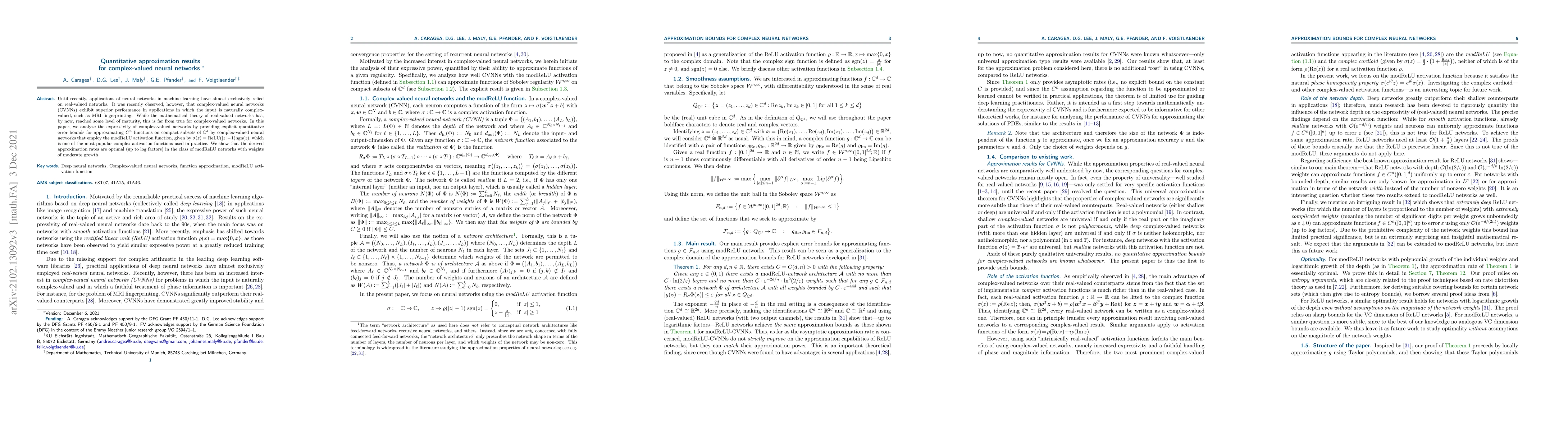This paper establishes quantitative error bounds for complex-valued neural networks (CVNNs) using the modReLU activation function, demonstrating their superior performance in applications with naturally complex-valued inputs. It shows that CVNNs can optimally approximate $C^n$ functions on compact subsets of $\mathbb{C}^d$ up to logarithmic factors.