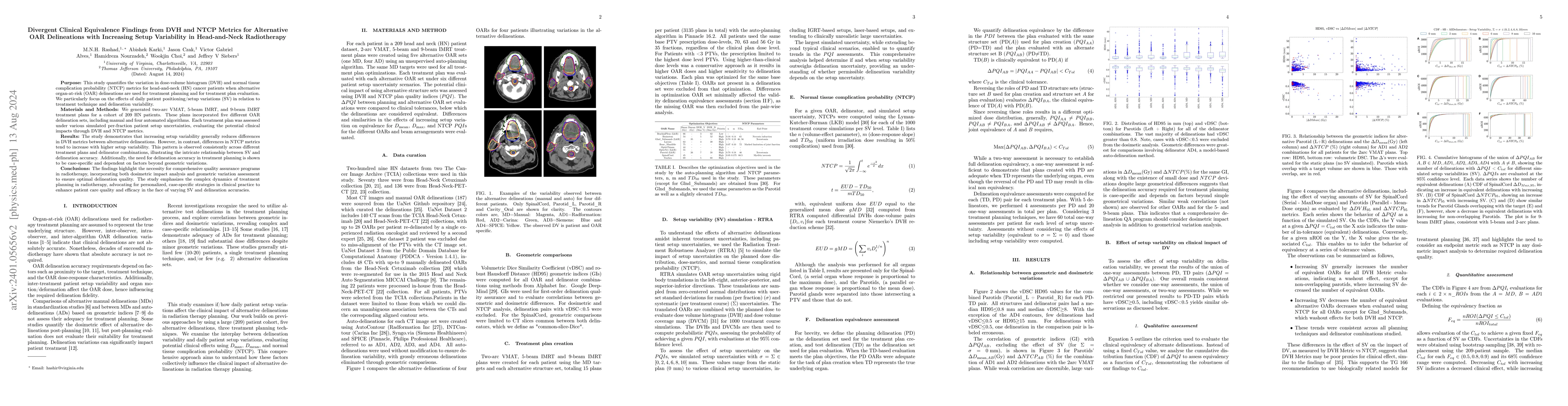 Purpose: This study aims to quantify the variation in dose-volume histogram (DVH) and normal tissue complication probability(NTCP) metrics for head-and-neck (HN) cancer patients when alternative organ-at-risk(OAR) delineations are used for treatment planning and for treatment plan evaluation. We particularly focus on the effects of daily patient positioning/setup variations(SV) in relation to treatment technique and delineation variability. Materials and Methods: We generated two-arc VMAT, 5-beam IMRT, and 9-beam IMRT treatment plans for a cohort of 209 HN patients. These plans incorporated five different OAR delineation sets, including manual and four automated algorithms. Each treatment plan was assessed under various simulated per-fraction patient setup uncertainties, evaluating the potential clinical impacts through DVH and NTCP metrics. Results: The study demonstrates that increasing SV generally reduces differences in DVH metrics between alternative delineations. However, in contrast, differences in NTCP metrics tend to increase with higher setup variability. This pattern is observed consistently across different treatment plans and delineator combinations, illustrating the intricate relationship between SV and delineation accuracy. Additionally, the need for delineation accuracy in treatment planning is shown to be case-specific and dependent on factors beyond geometric variations. Conclusions: The findings highlight the necessity for comprehensive Quality Assurance programs in radiotherapy, incorporating both dosimetric impact analysis and geometric variation assessment to ensure optimal delineation quality. The study emphasizes the complex dynamics of treatment planning in radiotherapy, advocating for personalized, case-specific strategies in clinical practice to enhance patient care quality and efficacy in the face of varying SV and delineation accuracies.