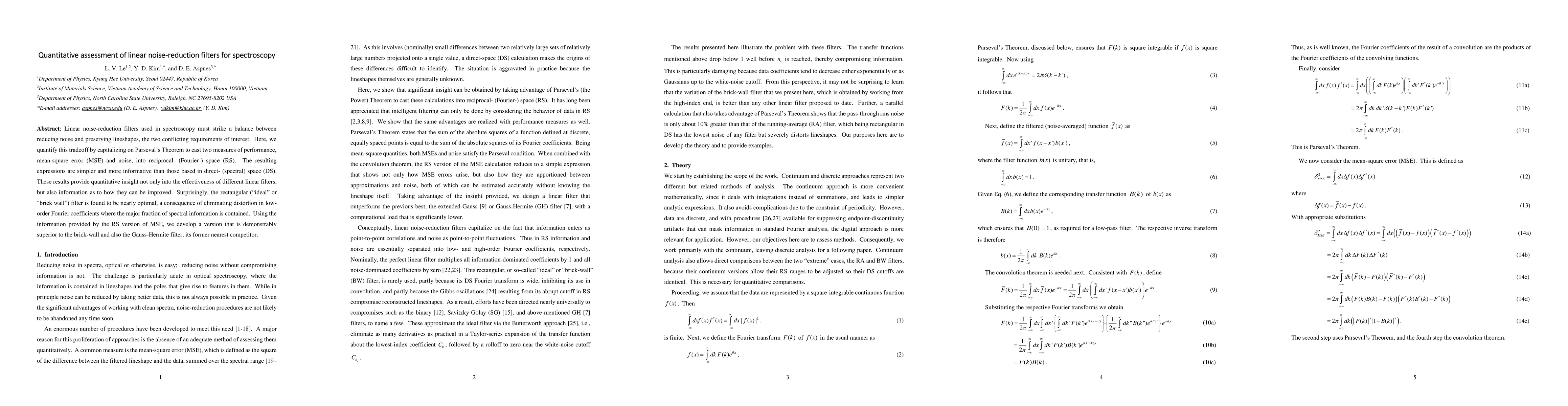 Linear noise-reduction filters used in spectroscopy must strike a balance between reducing noise and preserving lineshapes, the two conflicting requirements of interest.