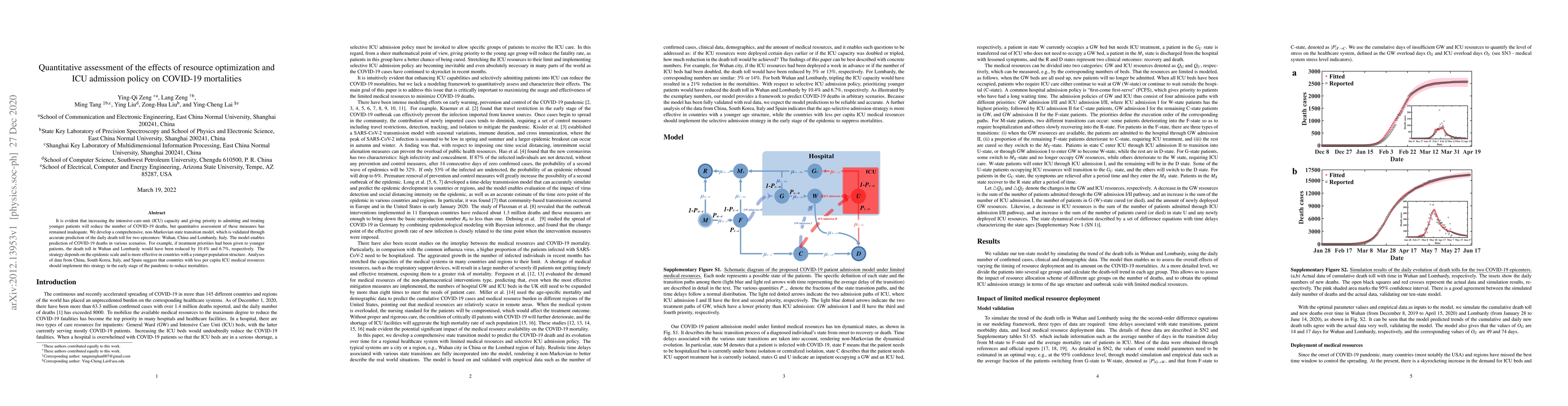 It is evident that increasing the intensive-care-unit (ICU) capacity and giving priority to admitting and treating younger patients will reduce the number of COVID-19 deaths, but a quantitative assessment of these measures has remained inadequate. We develop a comprehensive, non-Markovian state transition model, which is validated through accurate prediction of the daily death toll for two epicenters: Wuhan, China and Lombardy, Italy. The model enables prediction of COVID-19 deaths in various scenarios. For example, if treatment priorities had been given to younger patients, the death toll in Wuhan and Lombardy would have been reduced by 10.4\% and 6.7\%, respectively. The strategy depends on the epidemic scale and is more effective in countries with a younger population structure. Analyses of data from China, South Korea, Italy, and Spain suggest that countries with less per capita ICU medical resources should implement this strategy in the early stage of the pandemic to reduce mortalities.