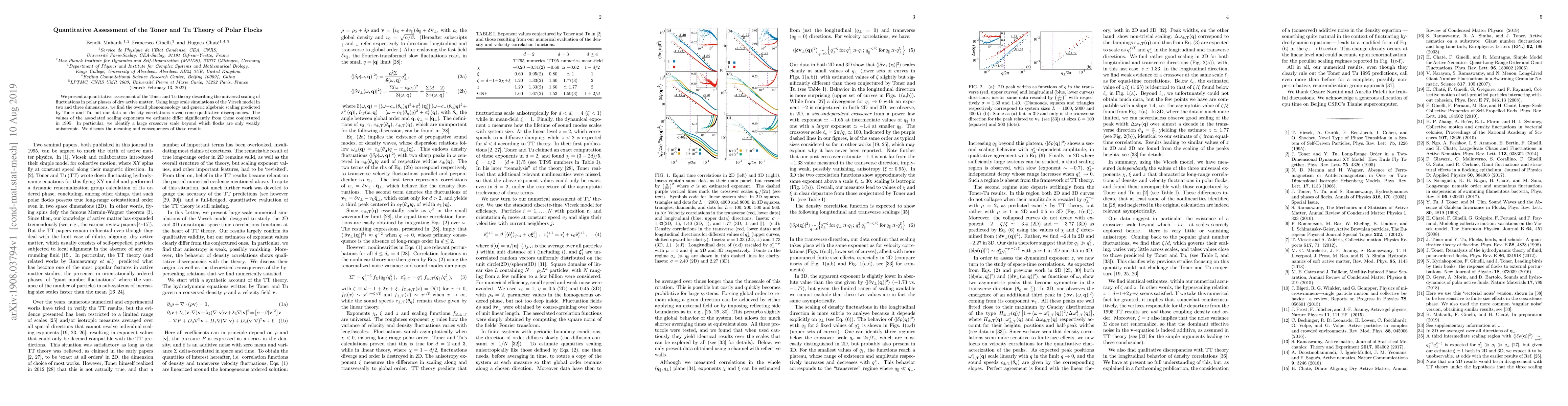 We present a quantitative assessment of the Toner and Tu theory describing the universal scaling of fluctuations in polar phases of dry active matter. Using large scale simulations of the Vicsek model in two and three dimensions, we find the overall phenomenology and generic algebraic scaling predicted by Toner and Tu, but our data on density correlations reveal some qualitative discrepancies. The values of the associated scaling exponents we estimate differ significantly from those conjectured in 1995. In particular, we identify a large crossover scale beyond which flocks are only weakly anisotropic. We discuss the meaning and consequences of these results.