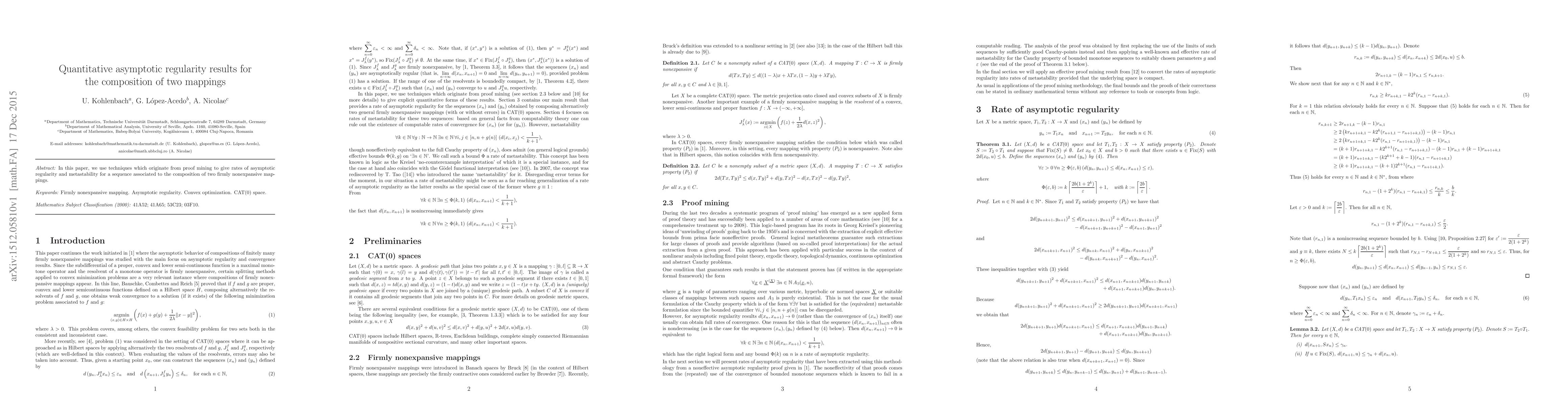 Summary: This paper employs proof mining techniques to determine the rates of asymptotic regularity and metastability for a sequence linked to the composition of two firmly nonexpansive mappings, providing quantitative regularity results.