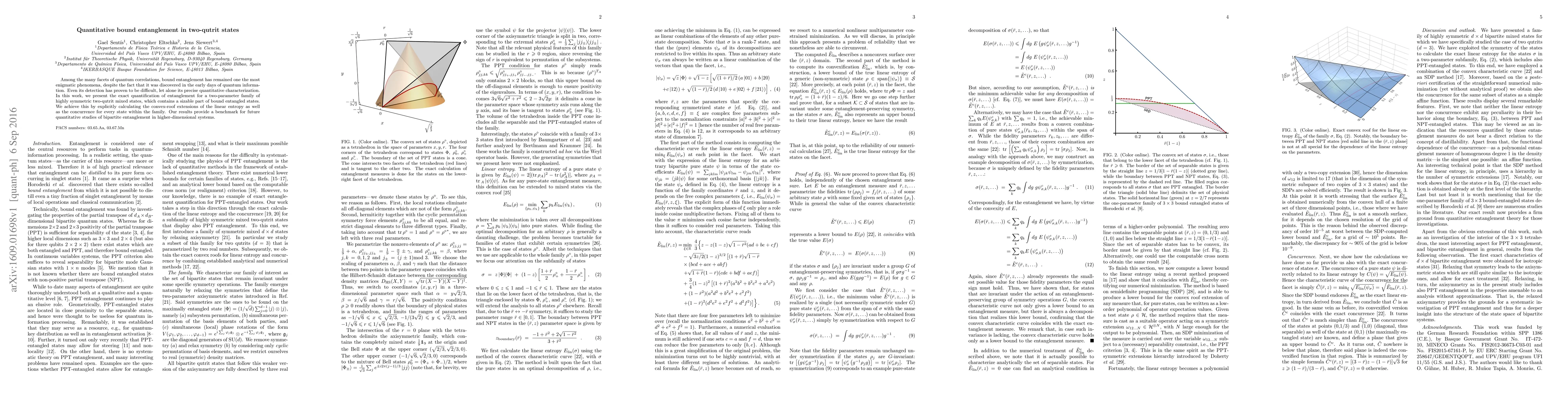 This paper quantifies entanglement in a two-qutrit family of mixed states, identifying and calculating bound entanglement through convex-roof extensions of linear entropy and concurrence. The findings offer a benchmark for future research on bipartite entanglement in higher-dimensional quantum systems.