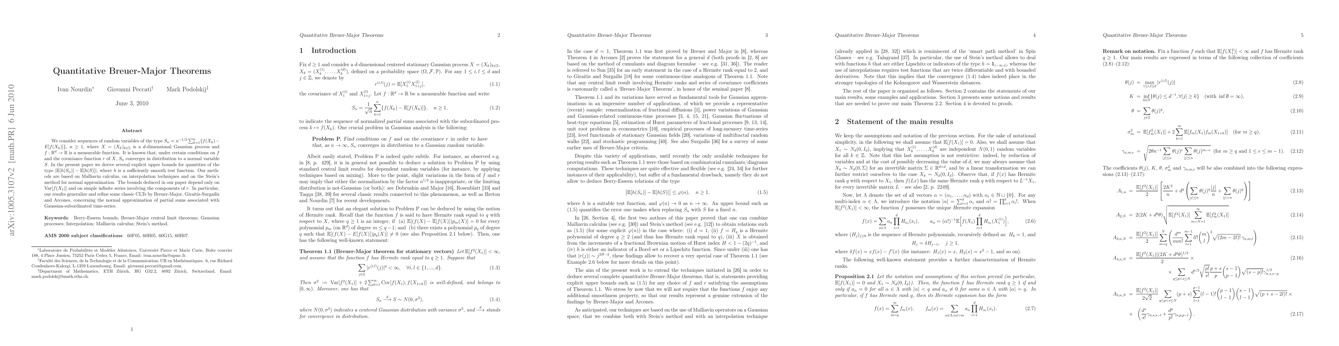 We consider sequences of random variables of the type $S_n= n^{-1/2} \sum_{k=1}^n \{f(X_k)-\E[f(X_k)]\}$, $n\geq 1$, where $X=(X_k)_{k\in \Z}$ is a $d$-dimensional Gaussian process and $f: \R^d \rightarrow \R$ is a measurable function. It is known that, under certain conditions on $f$ and the covariance function $r$ of $X$, $S_n$ converges in distribution to a normal variable $S$. In the present paper we derive several explicit upper bounds for quantities of the type $|\E[h(S_n)] -\E[h(S)]|$, where $h$ is a sufficiently smooth test function. Our methods are based on Malliavin calculus, on interpolation techniques and on the Stein's method for normal approximation. The bounds deduced in our paper depend only on $Var[f^2(X_1)]$ and on simple infinite series involving the components of $r$. In particular, our results generalize and refine some classic CLTs by Breuer-Major, Giraitis-Surgailis and Arcones, concerning the normal approximation of partial sums associated with Gaussian-subordinated time-series.