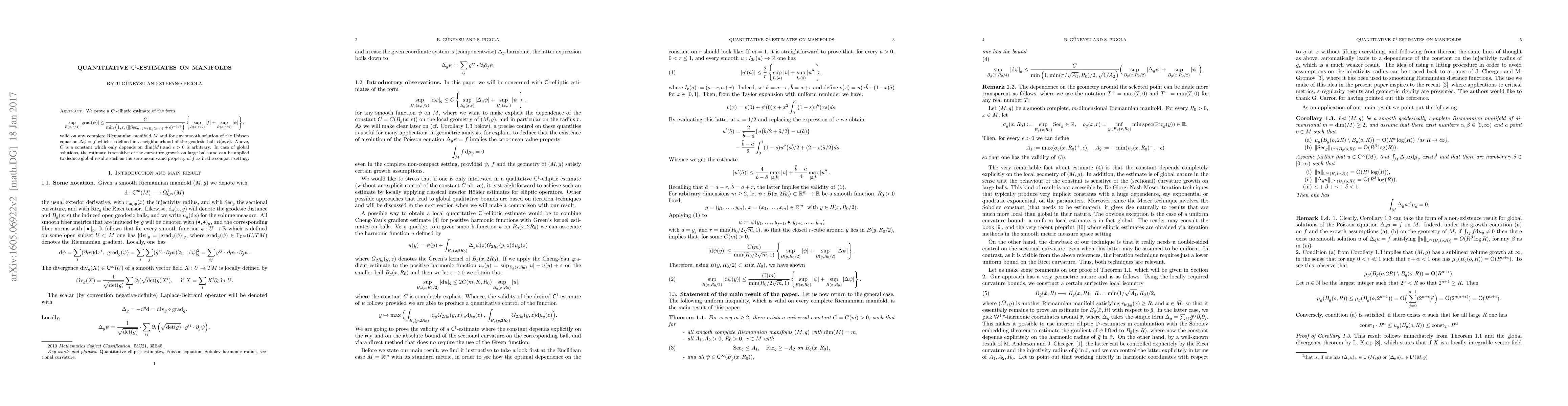 This paper proves a C^1-elliptic estimate on manifolds, showing that the gradient of a function can be bounded in terms of its Laplacian and value over a ball, with an explicit constant dependent on the curvature of the ball.