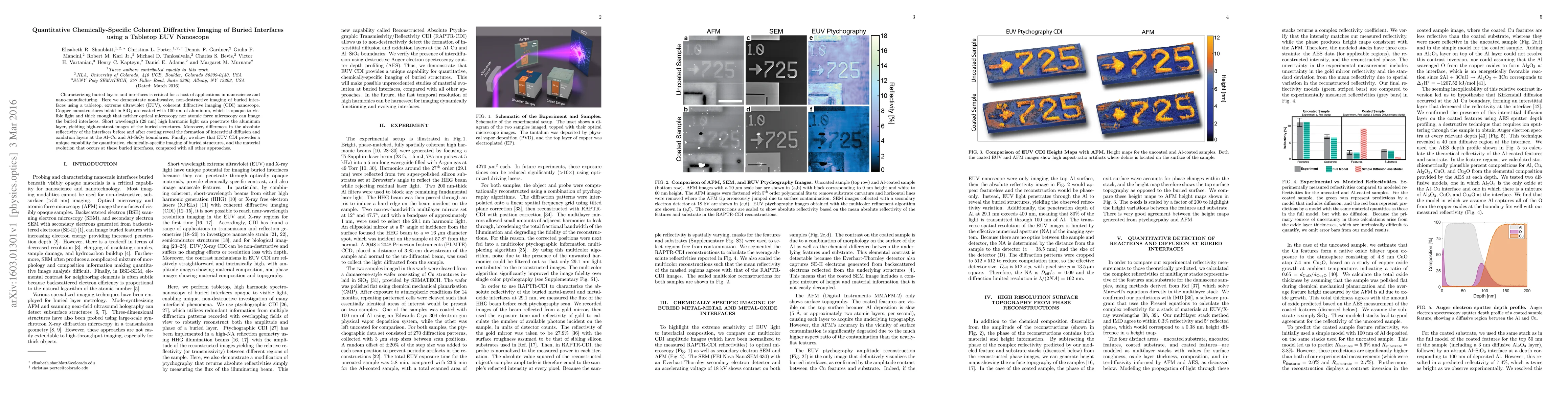 This paper demonstrates non-invasive imaging of buried interfaces using a tabletop extreme ultraviolet (EUV) coherent diffractive imaging (CDI) nanoscope, revealing interstitial diffusion and oxidation layers at the aluminum-copper and aluminum-silica boundaries. EUV CDI provides quantitative, chemically-specific imaging capabilities unattainable by other methods.