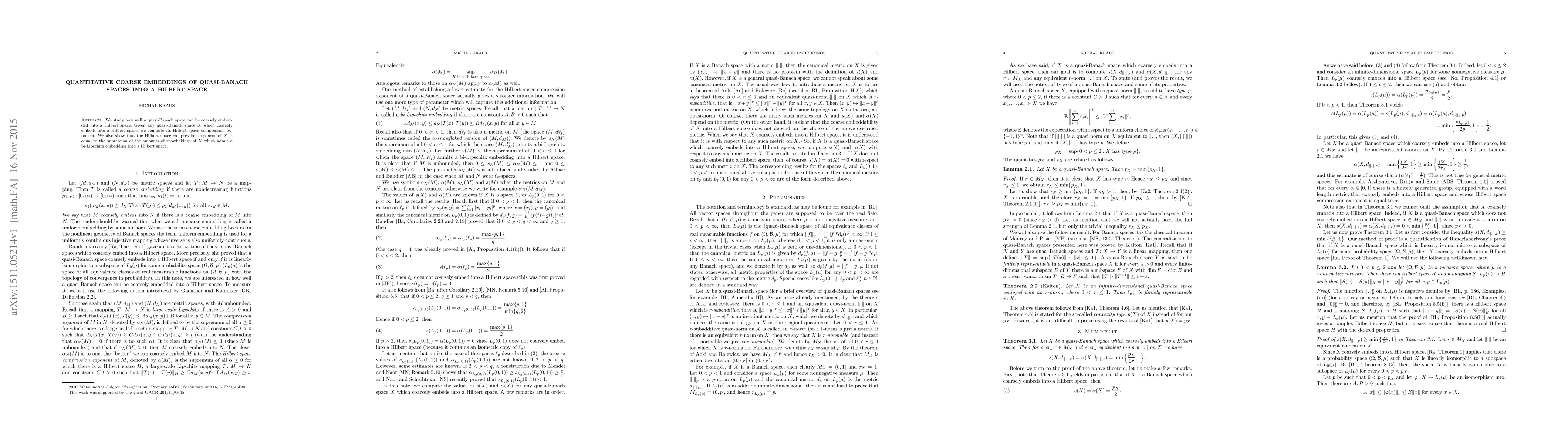 This paper investigates the quantitative coarse embeddings of quasi-Banach spaces into Hilbert spaces, determining the Hilbert space compression exponent for such embeddings. It also establishes that this exponent equals the supremum of snowflakings of the space that can be bi-Lipschitz embedded into a Hilbert space.