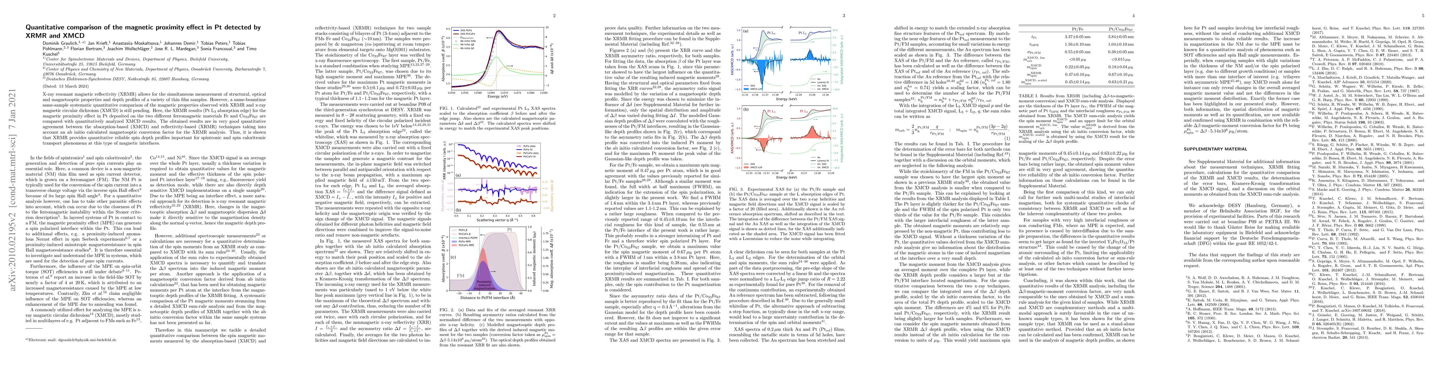 This study quantitatively compares the magnetic proximity effect in Pt using XRMR and XMCD, finding strong agreement between the two techniques. The results demonstrate that XRMR provides reliable spin depth profiles, crucial for understanding spintronic and spin caloritronic phenomena at magnetic interfaces.