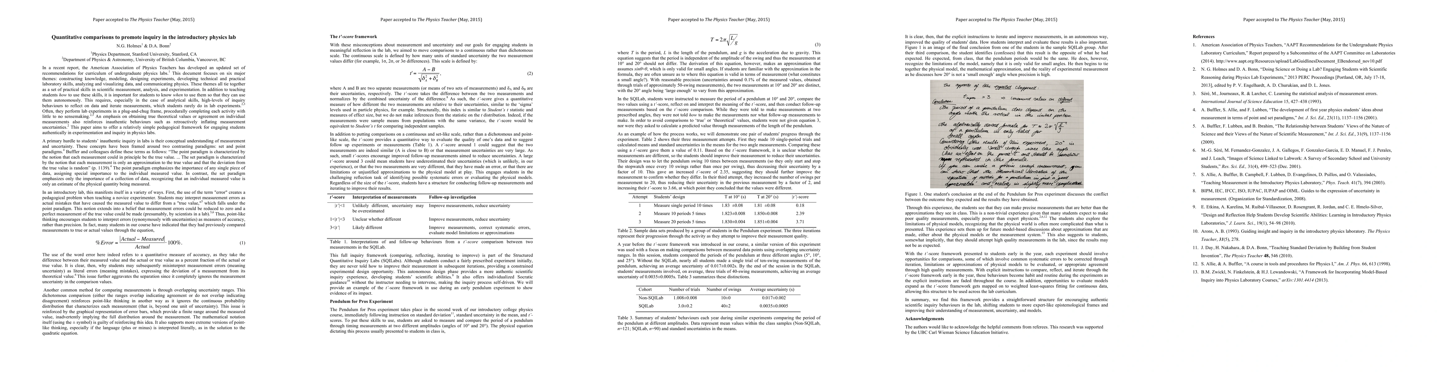 The research introduces the t'-score framework, a quantitative method for comparing data sets in introductory physics labs, focusing on iterative cycles of comparisons to promote inquiry and critical thinking.