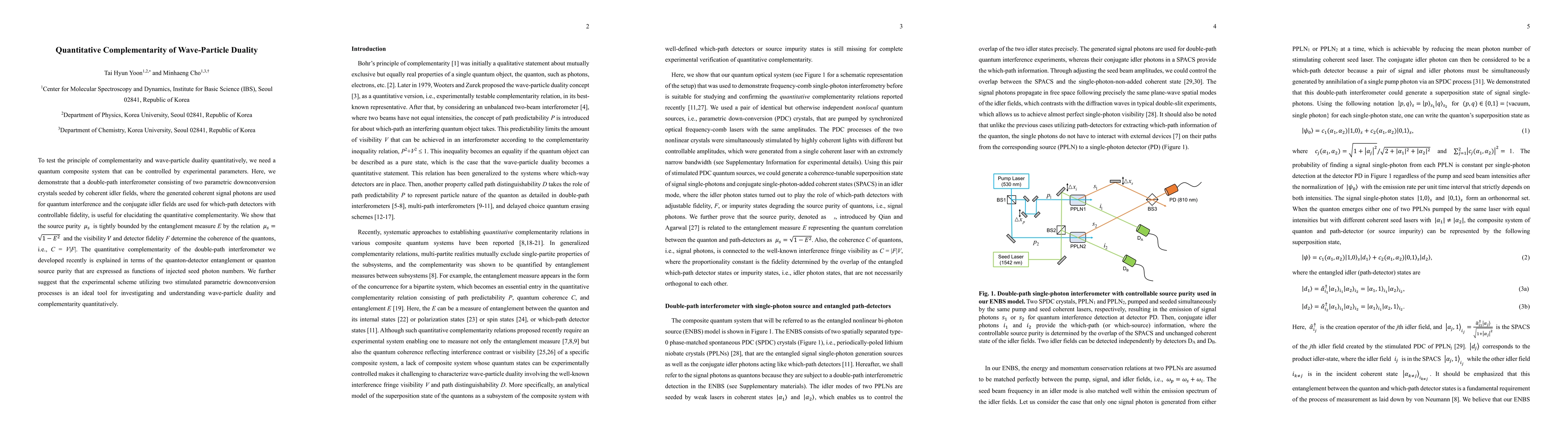 This paper develops a double-path interferometer to quantitatively test wave-particle duality and complementarity, showing that source purity is bounded by entanglement measure and coherence is determined by visibility and detector fidelity. The proposed experimental setup using parametric downconversion is suggested as an ideal tool for understanding these quantum principles.