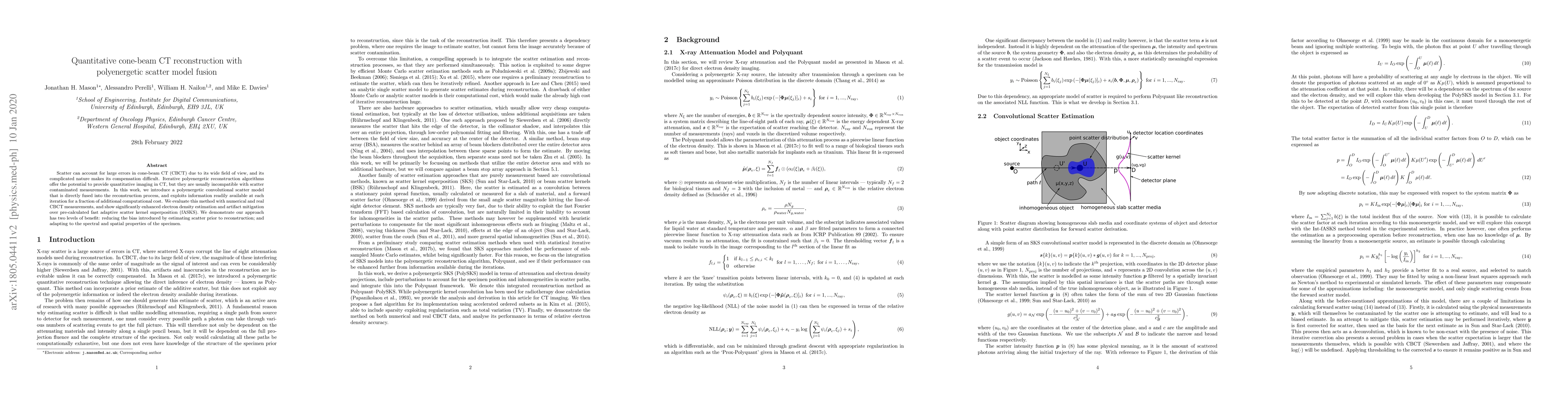 Researchers developed a new method to improve cone-beam CT reconstruction by directly fusing polyenergetic scatter models into the reconstruction process, significantly enhancing accuracy and artifact mitigation.