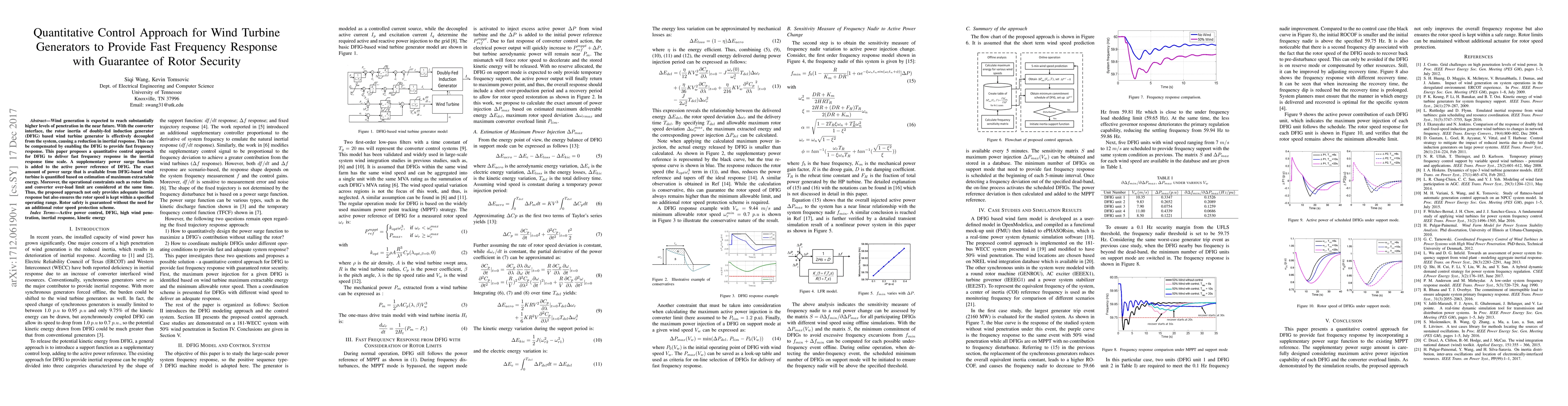 This paper proposes a quantitative control method for doubly-fed induction generator (DFIG) based wind turbines to provide fast frequency response while ensuring rotor security. The approach includes a supplementary power surge function, quantifying the extractable energy, and considering operational constraints to maintain rotor speed within safe limits.