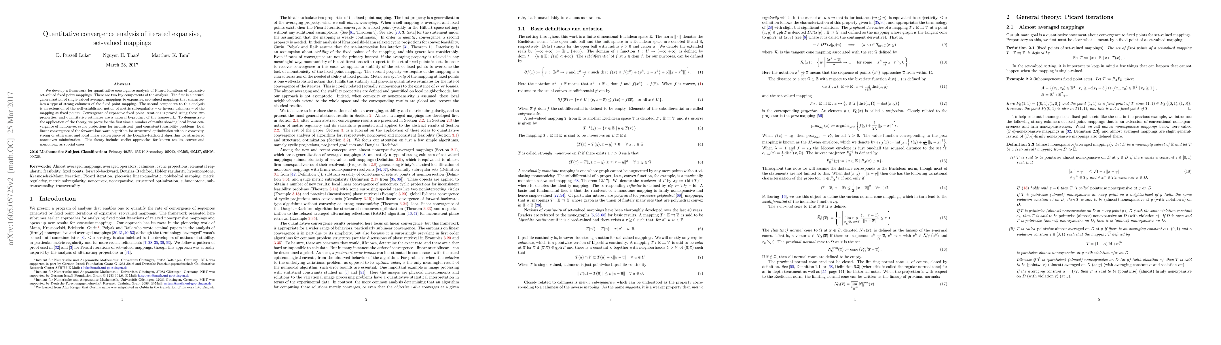 We develop a framework for quantitative convergence analysis of Picard iterations of expansive set-valued fixed point mappings. There are two key components of the analysis. The first is a natural generalization of single-valued averaged mappings to expansive, set-valued mappings that characterizes a type of strong calmness of the fixed point mapping. The second component to this analysis is an extension of the well-established notion of metric subregularity -- or inverse calmness -- of the mapping at fixed points. Convergence of expansive fixed point iterations is proved using these two properties, and quantitative estimates are a natural byproduct of the framework. To demonstrate the application of the theory, we prove for the first time a number of results showing local linear convergence of nonconvex cyclic projections for inconsistent (and consistent) feasibility problems, local linear convergence of the forward-backward algorithm for structured optimization without convexity, strong or otherwise, and local linear convergence of the Douglas--Rachford algorithm for structured nonconvex minimization. This theory includes earlier approaches for known results, convex and nonconvex, as special cases.