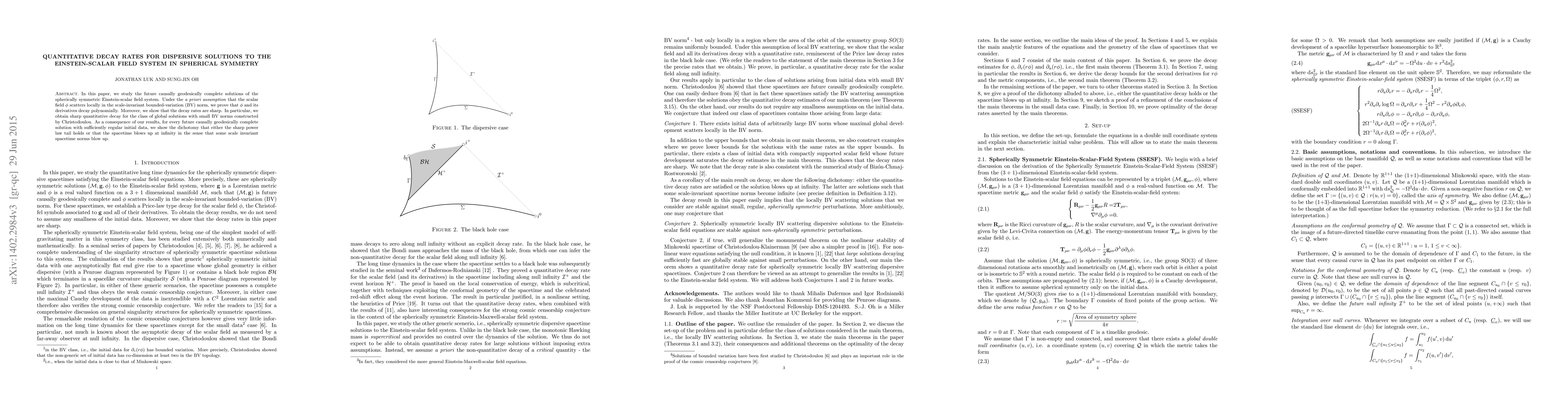 This paper proves polynomial decay rates for dispersive solutions of the spherically symmetric Einstein-scalar field system, showing that the decay rates are sharp. It also establishes a dichotomy for future causally geodesically complete solutions: either they exhibit sharp power law decay or they blow up at infinity.