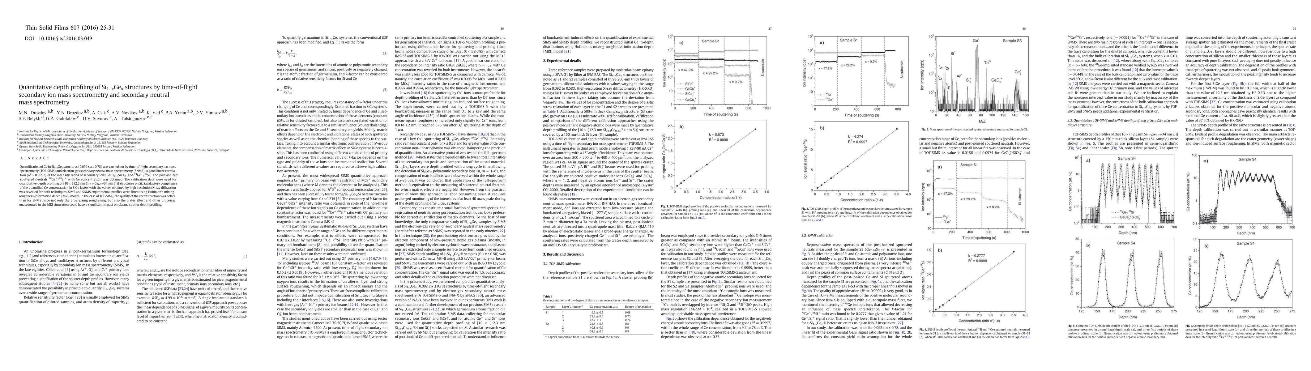 The paper presents a comprehensive calibration and quantification method for Ge in Si1-xGex structures using TOF-SIMS and SNMS, supported by the Hofmann MRI model.