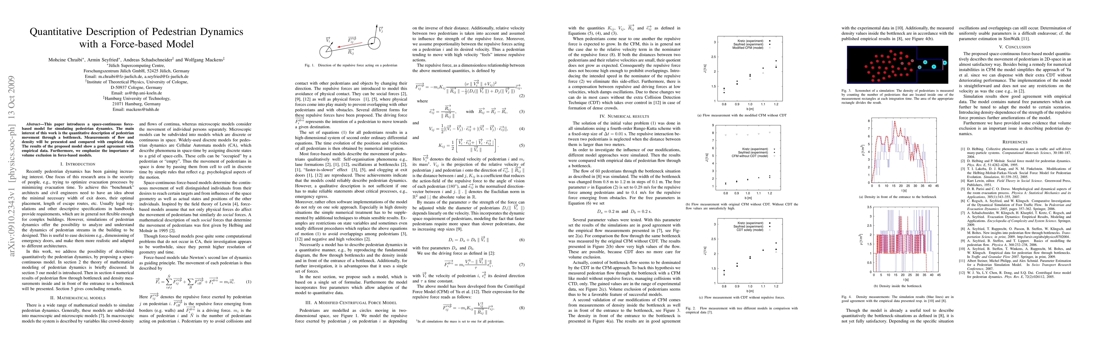 This paper presents a continuous force-based model for simulating pedestrian dynamics, particularly through bottlenecks. The model's quantitative predictions of flow and density align well with empirical data, highlighting the significance of volume exclusion in such simulations.