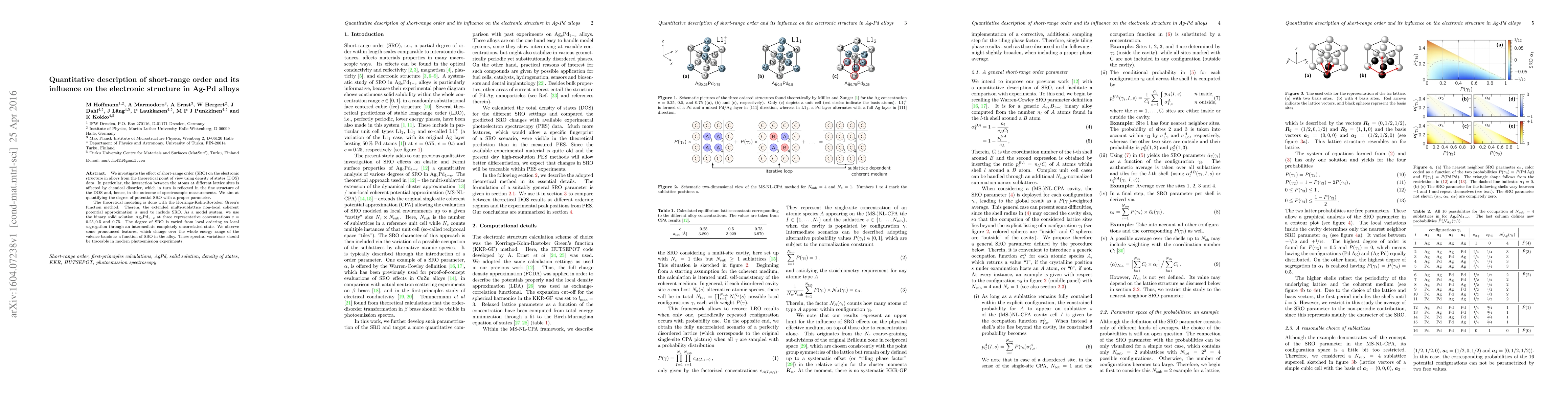 This paper uses theoretical modeling to quantify the influence of short-range order (SRO) on the electronic structure in Ag-Pd alloys, employing the Korringa-Kohn-Rostoker Green's function method. The study reveals significant spectral variations in the valence bands correlated with the degree of SRO, which can be detected in photoemission experiments.