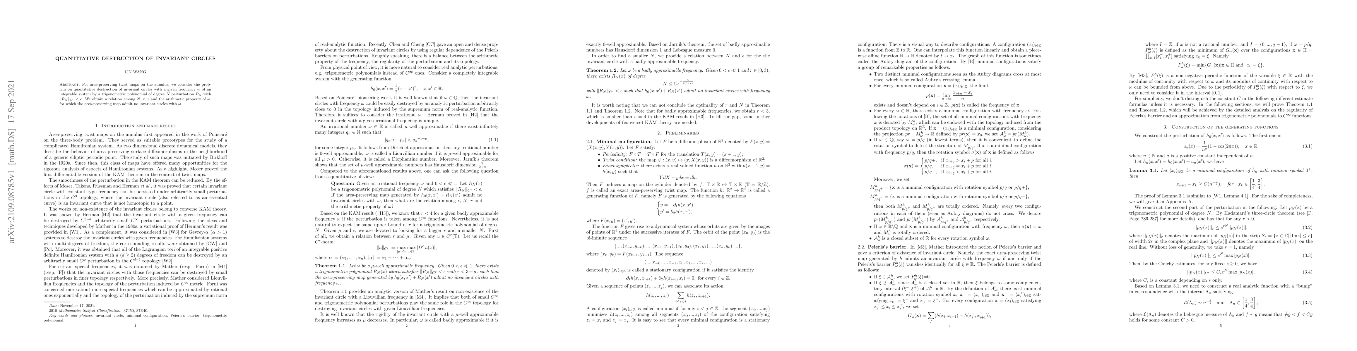 This paper investigates the quantitative destruction of invariant circles in area-preserving twist maps on an annulus, showing a relation between the degree of perturbation, smoothness, perturbation size, and the arithmetic properties of the frequency, ensuring no invariant circles exist with that frequency.