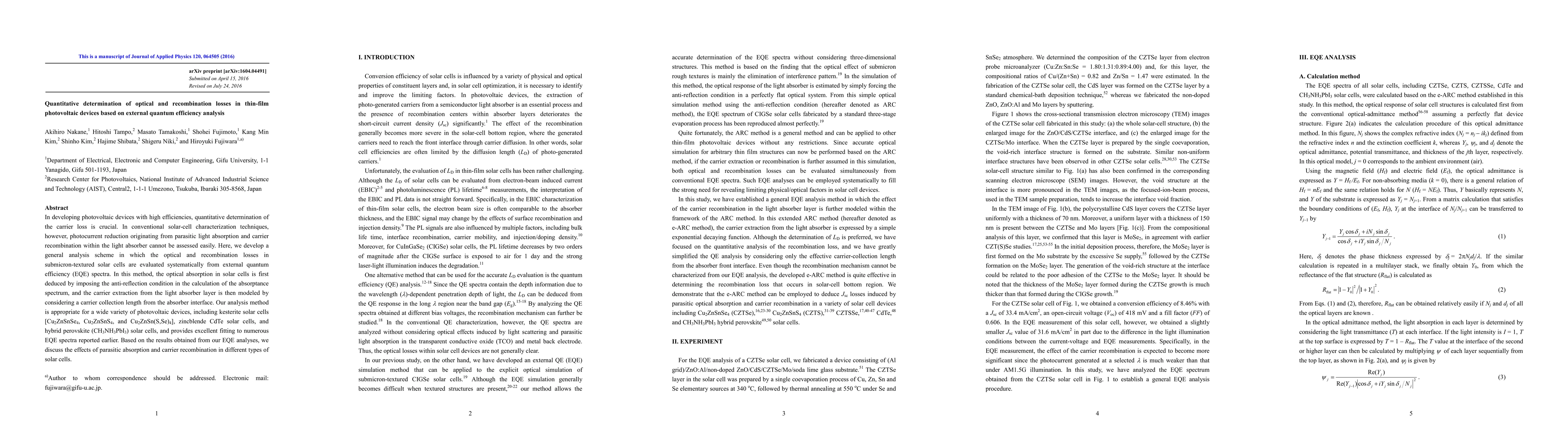A new method for analyzing external quantum efficiency spectra to determine optical and recombination losses in thin-film photovoltaic devices is presented, with applications for various solar cell types.