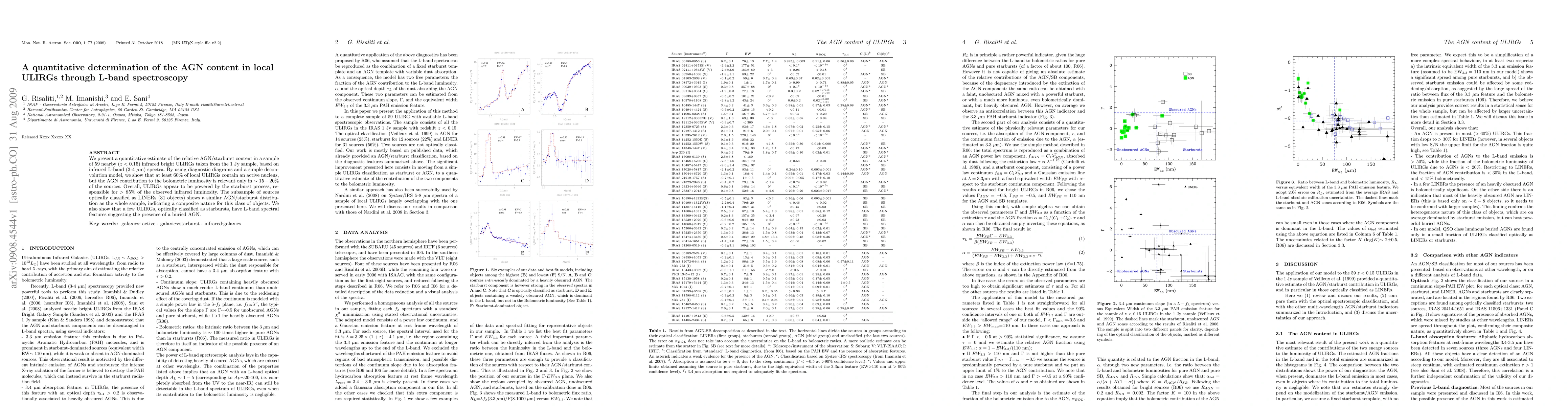 We present a quantitative estimate of the relative AGN/starburst content in a sample of 59 nearby (z<0.15) infrared bright ULIRGs taken from the 1 Jy sample, based on infrared L-band (3-4 micron) spectra. By using diagnostic diagrams and a simple deconvolution model, we show that at least 60% of local ULIRGs contain an active nucleus, but the AGN contribution to the bolometric luminosity is relevant only in ~15-20% of the sources. Overall, ULIRGs appear to be powered by the starburst process, responsible for >85% of the observed infrared luminosity. The subsample of sources optically classified as LINERs (31 objects) shows a similar AGN/starburst distribution as the whole sample, indicating a composite nature for this class of objects. We also show that a few ULIRGs, optically classified as starbursts, have L-band spectral features suggesting the presence of a buried AGN.