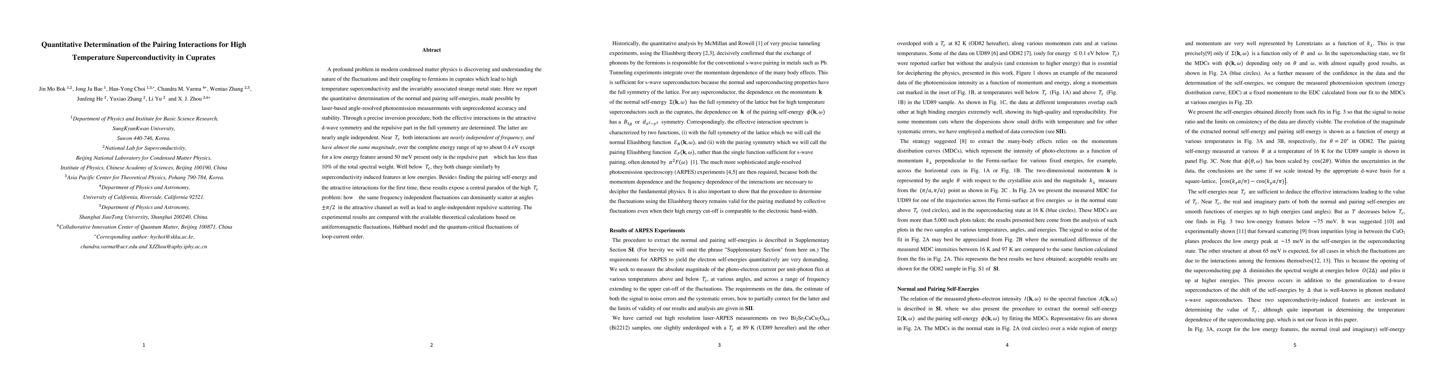 This paper reports the quantitative determination of normal and pairing self-energies in cuprates using laser-based angle-resolved photoemission spectroscopy, revealing nearly frequency-independent interactions near the critical temperature Tc. The study uncovers a paradox in high-temperature superconductivity: the same fluctuations cause both angle-dependent attractive and angle-independent repulsive scattering.