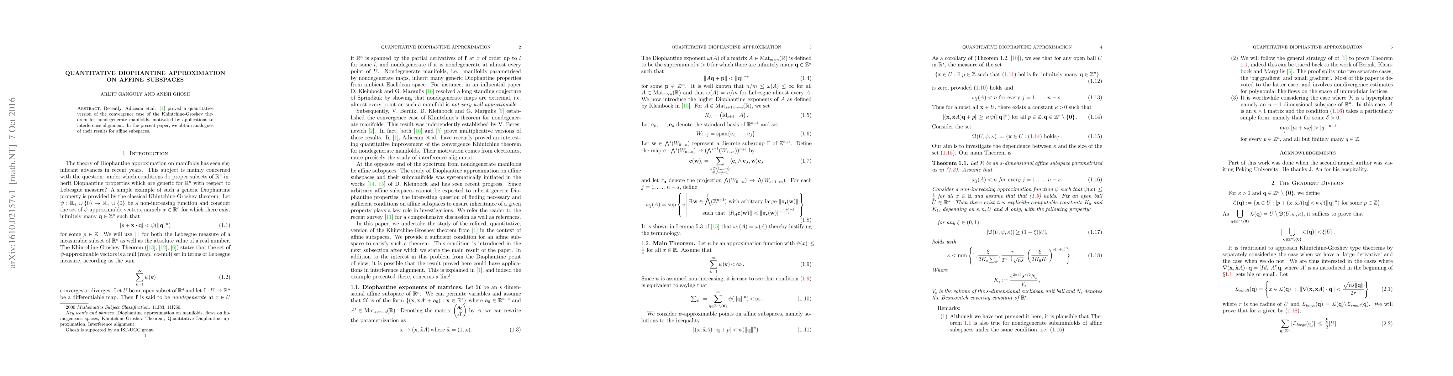 This paper extends the quantitative convergence results of the Khintchine-Groshev theorem to affine subspaces, building on recent work by Adiceam et al. for nondegenerate manifolds, with potential applications in interference alignment.
