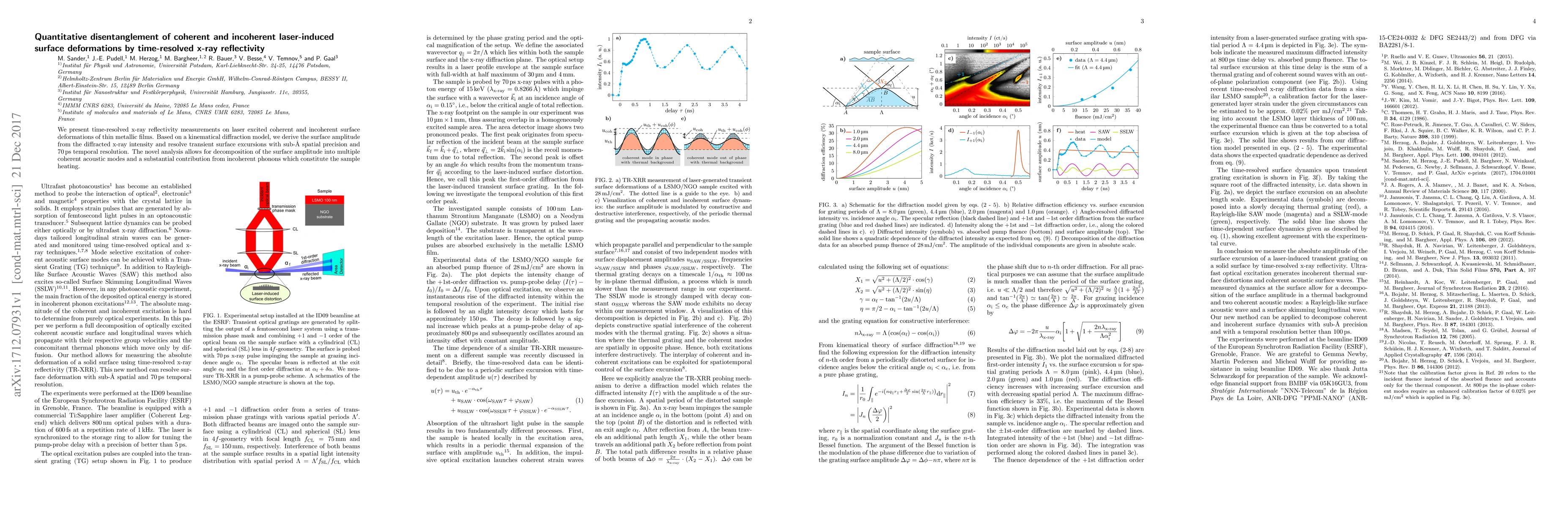This study uses time-resolved x-ray reflectivity to distinguish between coherent and incoherent laser-induced surface deformations in thin metallic films, achieving sub-Angstrom precision and 70 ps temporal resolution. The analysis reveals contributions from coherent acoustic modes and significant heating from incoherent phonons.