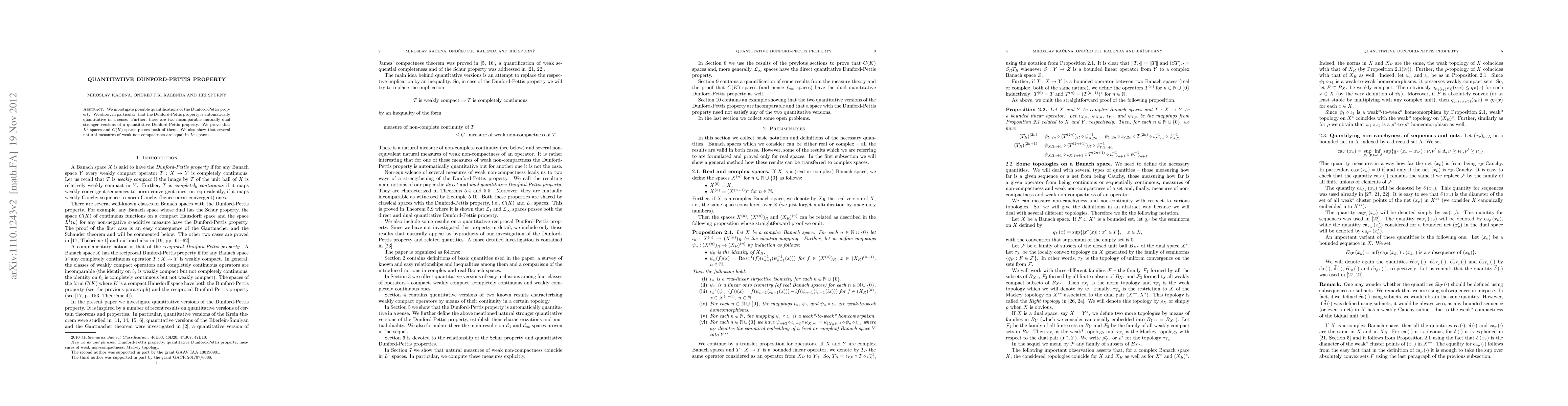 This paper explores quantifications of the Dunford-Pettis property, demonstrating its inherent quantitative nature and identifying two incomparable, mutually dual stronger versions. It proves that $L^1$ and $C(K)$ spaces possess both versions and shows that several measures of weak non-compactness are equal in $L^1$ spaces.