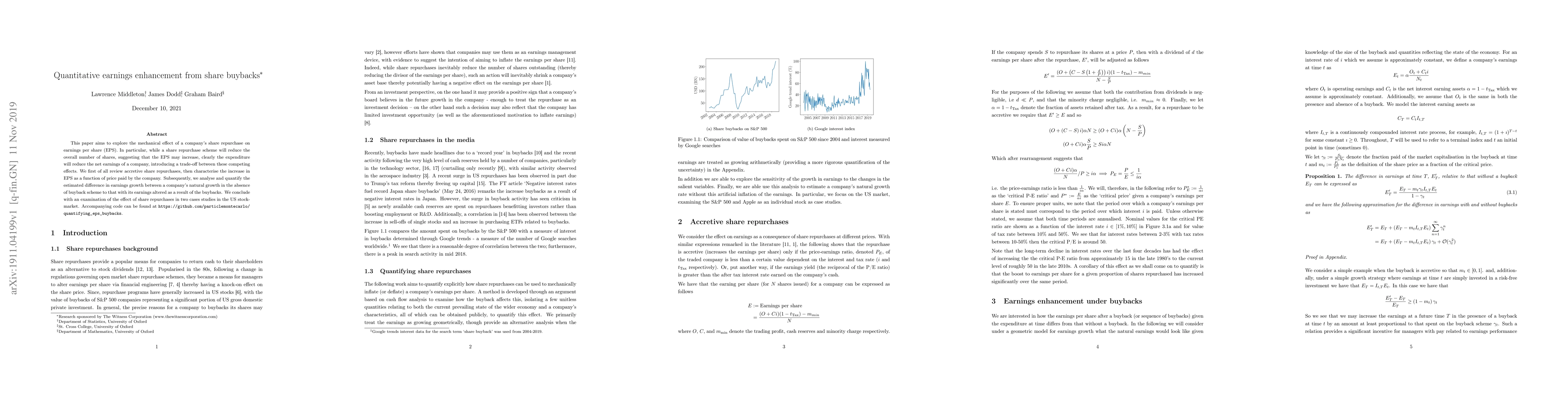The paper presents a mathematical model to quantify the earnings enhancement from share buybacks, considering both geometric and arithmetic models for natural earnings growth.