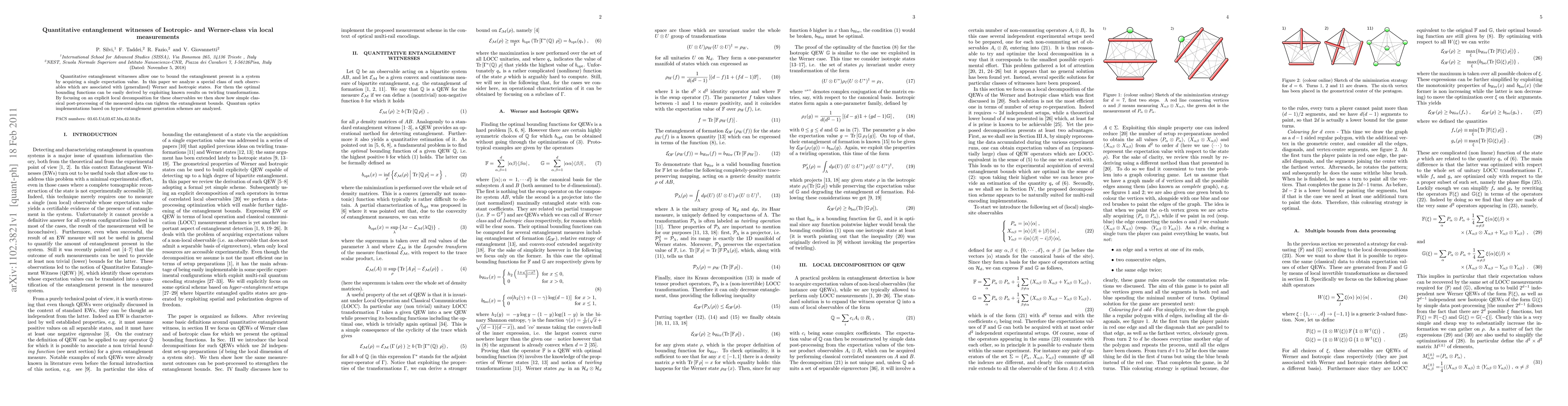 This paper develops quantitative entanglement witnesses for Werner- and Isotropic-class states, deriving optimal bounds using twirling transformations. It demonstrates how local measurements and classical post-processing can enhance entanglement detection, with practical quantum optics implementations discussed.