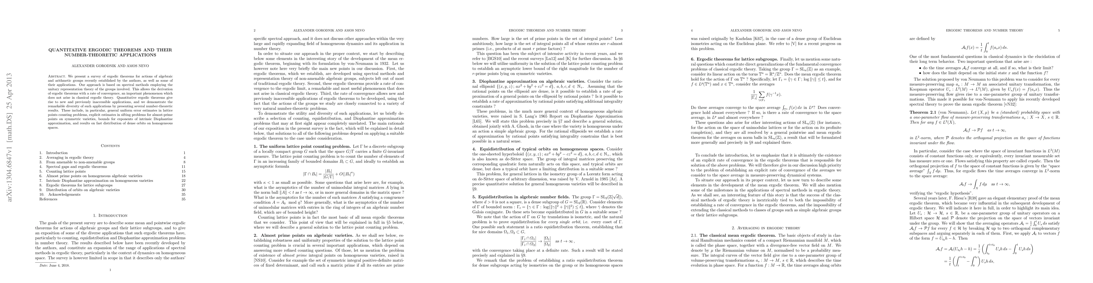 Development of quantitative ergodic theorems using spectral methods and unitary representation theory, leading to new applications in number theory.