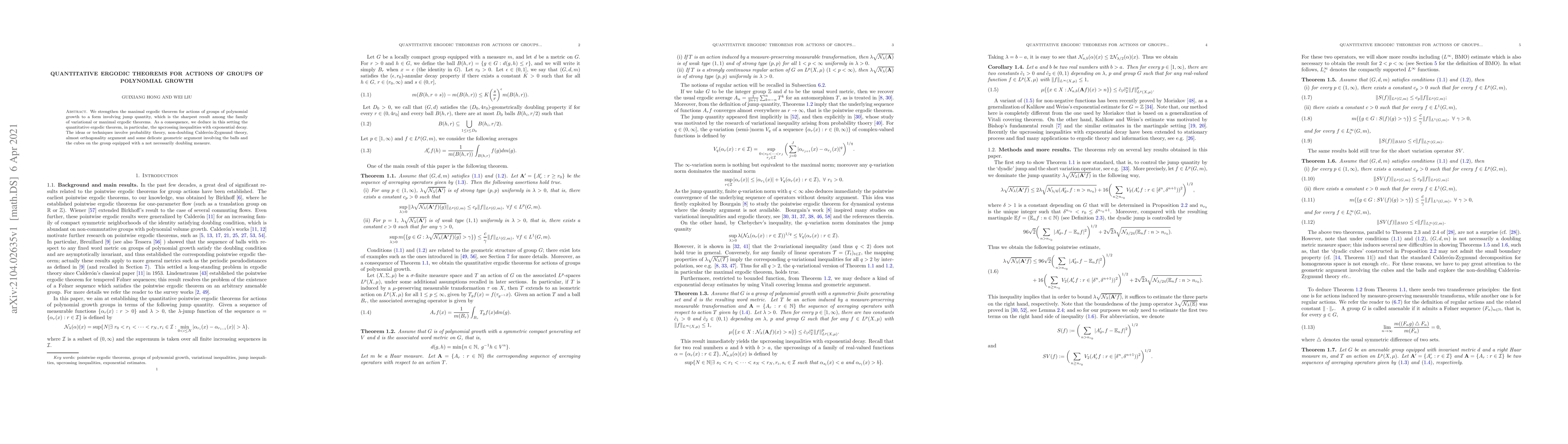 We strengthen the maximal ergodic theorem for actions of groups of polynomial growth to a form involving jump quantity, which is the sharpest result among the family of variational or maximal ergodic theorems. As a consequence, we deduce in this setting the quantitative ergodic theorem, in particular, the upcrossing inequalities with exponential decay. The ideas or techniques involve probability theory, non-doubling Calder\'on-Zygmund theory, almost orthogonality argument and some delicate geometric argument involving the balls and the cubes on the group equipped with a not necessarily doubling measure.