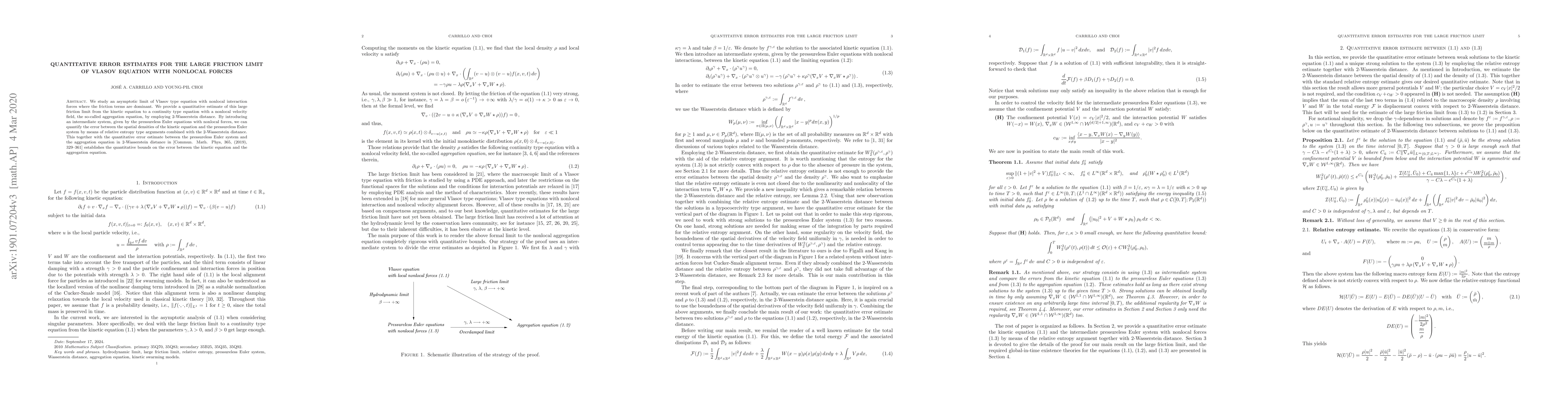 This paper provides quantitative error estimates for the large friction limit of the Vlasov equation with nonlocal forces, showing how it converges to the aggregation equation. The study employs $2$-Wasserstein distance and introduces an intermediate pressureless Euler system to quantify the error between the kinetic and Euler systems.