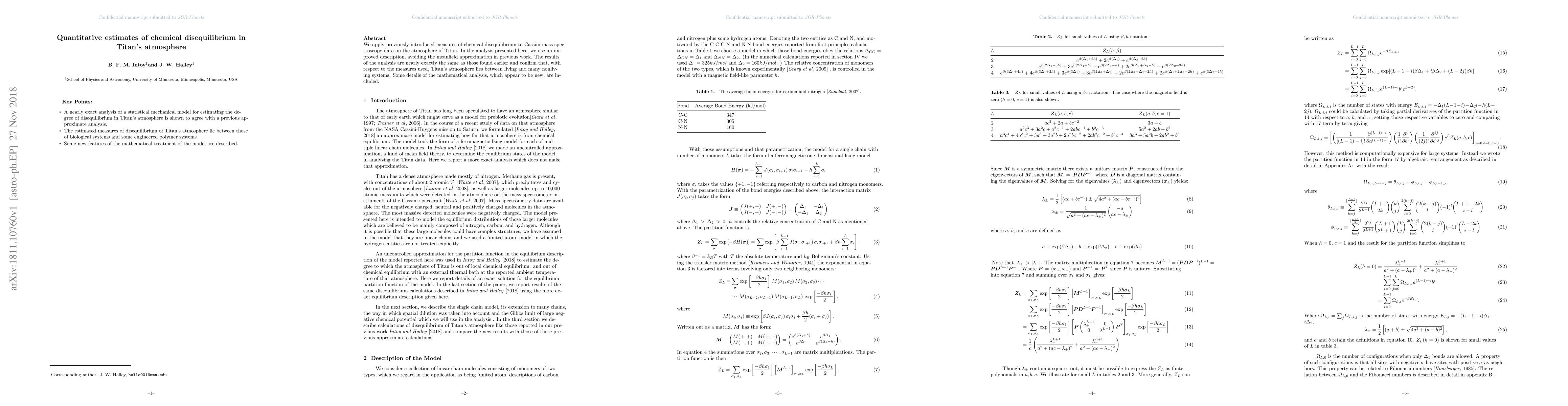 This study refines measures of chemical disequilibrium in Titan's atmosphere using improved analysis techniques, confirming earlier findings that Titan's atmosphere exhibits disequilibrium levels similar to living systems. New mathematical details enhance the analysis.