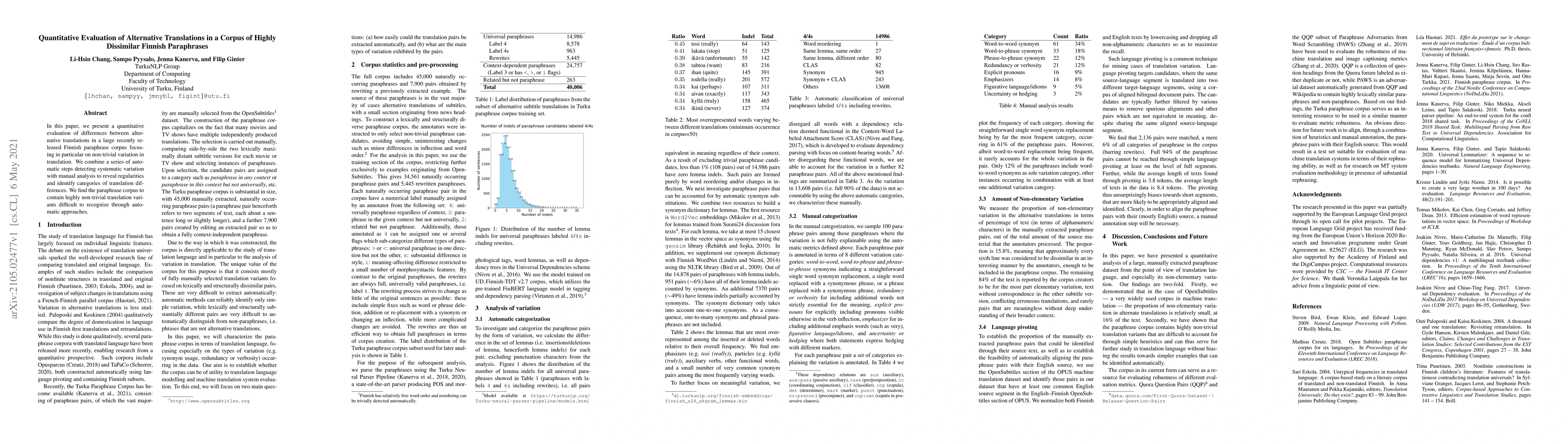 Researchers evaluated the quality of alternative translations in a large Finnish paraphrase corpus, finding that automatic approaches often fail to detect non-trivial variations. A combination of automated and manual analysis revealed regular patterns in translation differences, shedding light on the complexities of translating highly dissimilar texts.