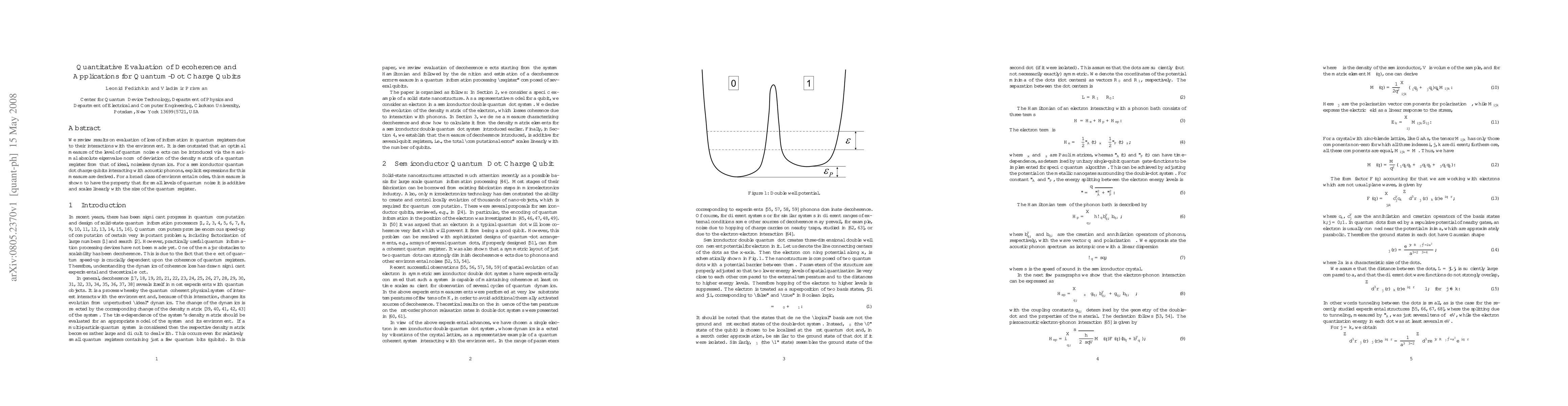 We review results on evaluation of loss of information in quantum registers due to their interactions with the environment. It is demonstrated that an optimal measure of the level of quantum noise effects can be introduced via the maximal absolute eigenvalue norm of deviation of the density matrix of a quantum register from that of ideal, noiseless dynamics. For a semiconductor quantum dot charge qubits interacting with acoustic phonons, explicit expressions for this measure are derived. For a broad class of environmental modes, this measure is shown to have the property that for small levels of quantum noise it is additive and scales linearly with the size of the quantum register.