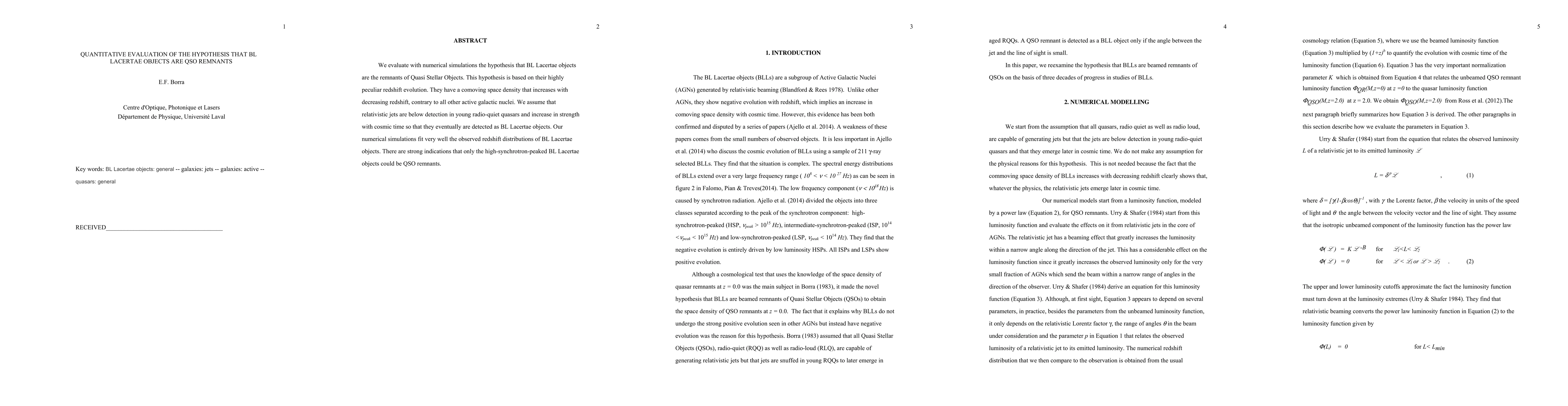 This paper evaluates the hypothesis that BL Lacertae objects are remnants of Quasi Stellar Objects (QSOs) using numerical simulations. The simulations show a good fit to the observed redshift distributions, suggesting that high-synchrotron-peaked BL Lacertae objects may indeed be evolving QSO remnants.