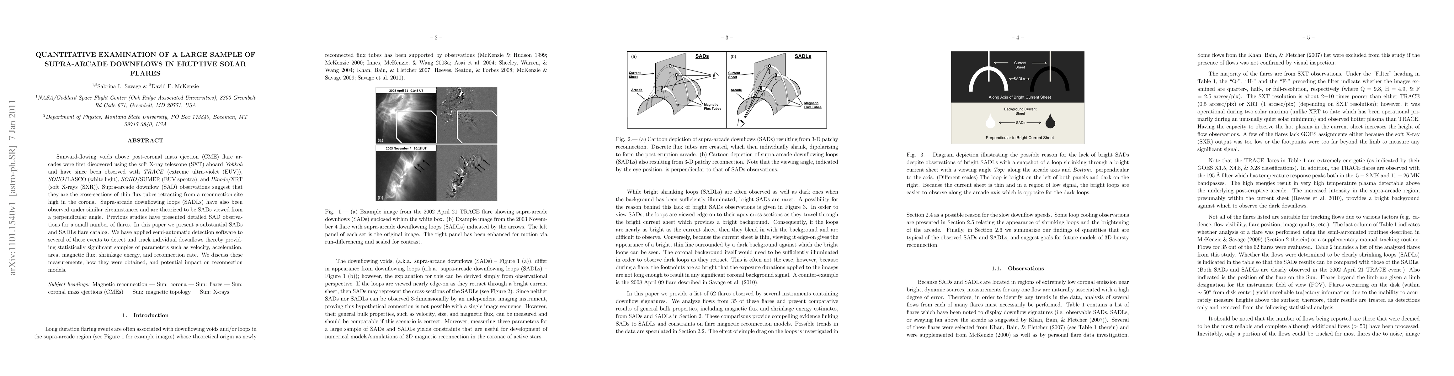 Sunward-flowing voids above post-coronal mass ejection (CME) flare arcades were first discovered using the soft X-ray telescope (SXT) aboard Yohkoh and have since been observed with TRACE (extreme ultra-violet (EUV)), SOHO/LASCO (white light), SOHO/SUMER (EUV spectra), and Hinode/XRT (soft X-rays (SXR)). Supra-arcade downflow (SAD) observations suggest that they are the cross-sections of thin flux tubes retracting from a reconnection site high in the corona. Supra-arcade downflowing loops (SADLs) have also been observed under similar circumstances and are theorized to be SADs viewed from a perpendicular angle. Previous studies have presented detailed SAD observations for a small number of flares. In this paper we present a substantial SADs and SADLs flare catalog. We have applied semi-automatic detection software to several of these events to detect and track individual downflows thereby providing statistically significant samples of parameters such as velocity, acceleration, area, magnetic flux, shrinkage energy, and reconnection rate. We discuss these measurements, how they were obtained, and potential impact on reconnection models.
