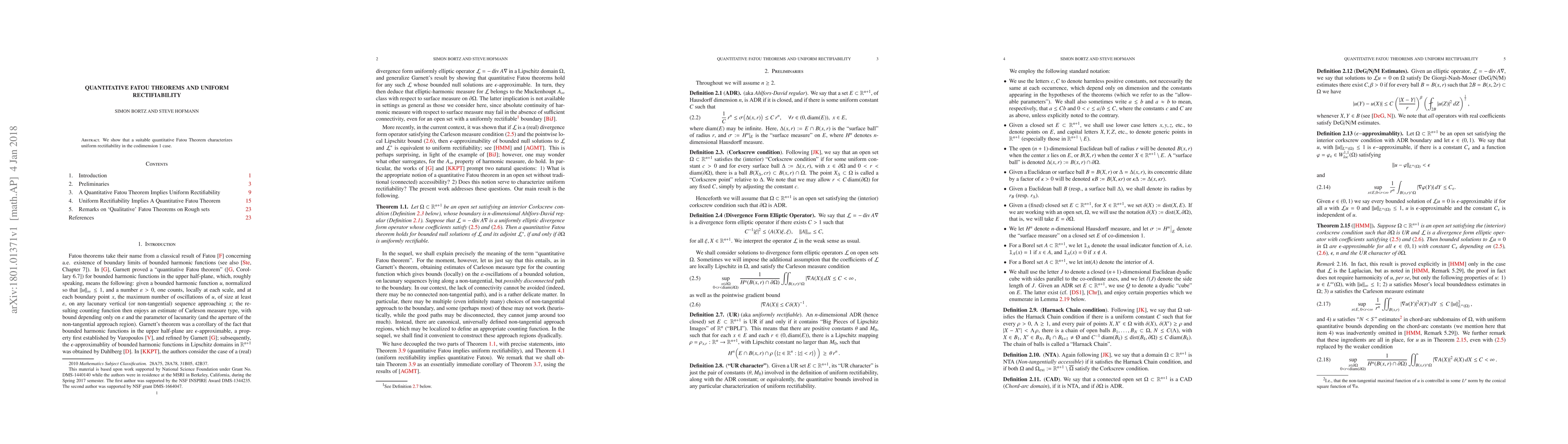 Summary: This paper establishes a quantitative Fatou Theorem that serves as a characterization for uniform rectifiability in the context of codimension 1. The findings provide a new perspective on the relationship between these two mathematical concepts.