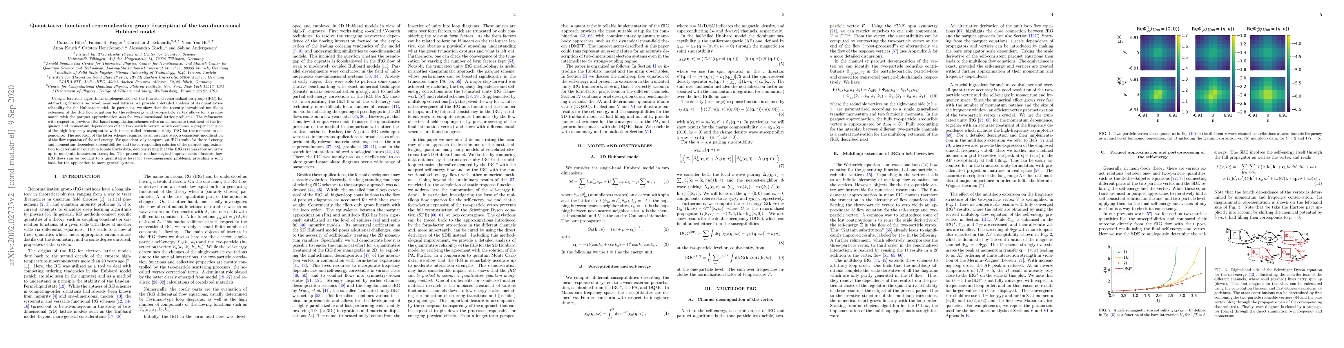 This paper employs a refined functional renormalization-group (fRG) method to analyze the two-dimensional Hubbard model, demonstrating its quantitative accuracy by comparing results with parquet approximation and quantum Monte Carlo data. The improvements include an accurate treatment of the two-particle vertex and a consistent modification of the self-energy flow equation.