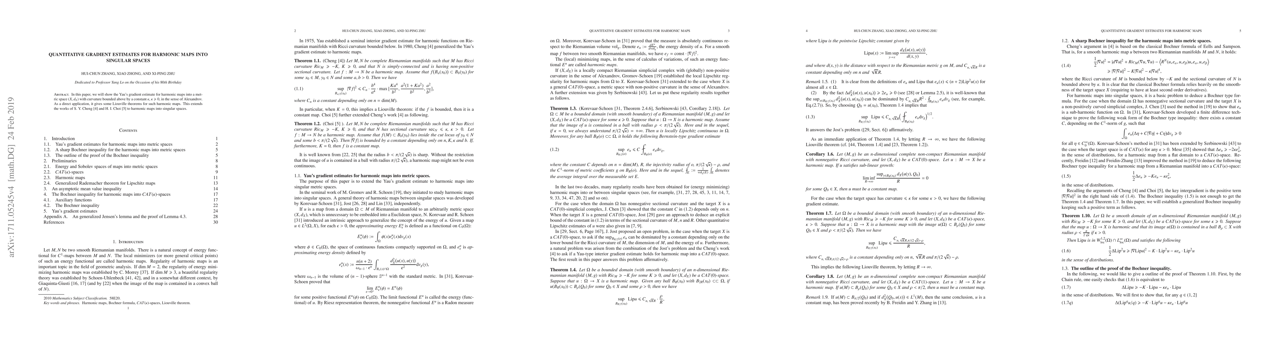 This paper extends Yau's gradient estimate for harmonic maps into singular metric spaces with non-negative upper curvature bounds, offering new Liouville theorems and advancing prior work by Cheng and Choi.