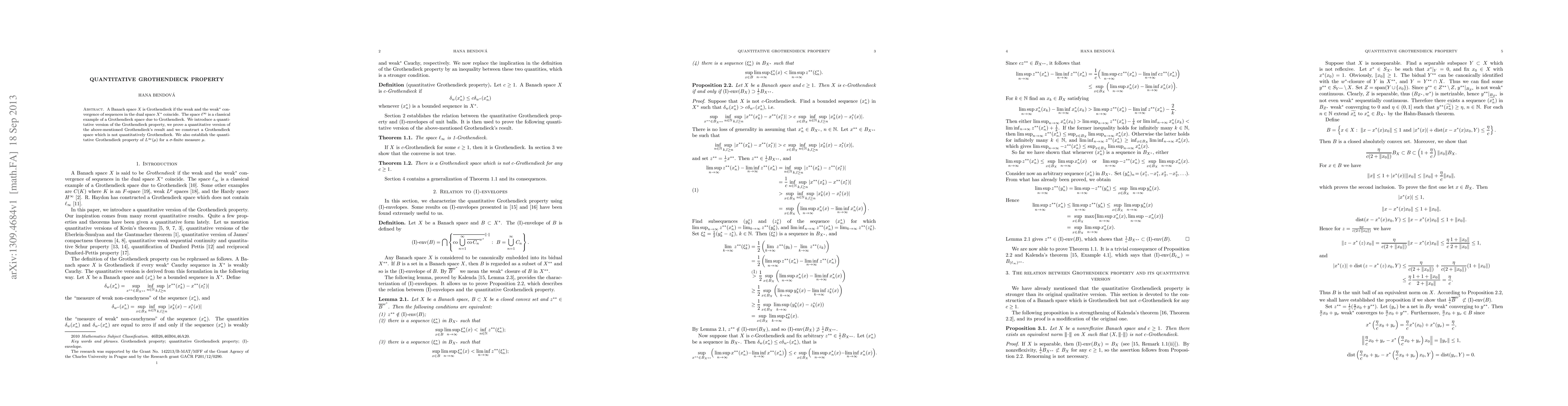 A Banach space $X$ is Grothendieck if the weak and the weak$^*$ convergence of sequences in the dual space $X^*$ coincide. The space $\ell^\infty$ is a classical example of a Grothendieck space due to Grothendieck. We introduce a quantitative version of the Grothendieck property, we prove a quantitative version of the above-mentioned Grothendieck's result and we construct a Grothendieck space which is not quantitatively Grothendieck. We also establish the quantitative Grothendieck property of $L^\infty(\mu)$ for a $\sigma$-finite measure $\mu$.