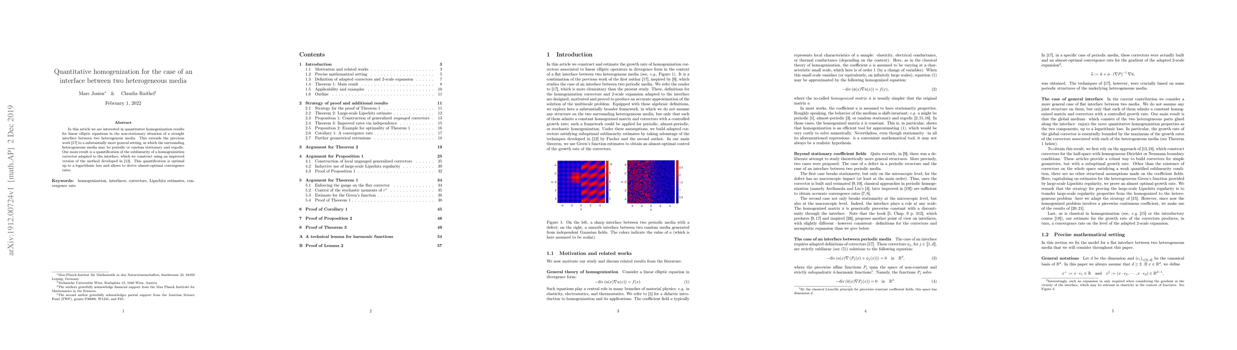 This paper extends quantitative homogenization results for linear elliptic equations across a straight interface between two heterogeneous media, providing optimal sublinearity quantification of a homogenization corrector. The study improves upon previous methods and achieves almost-optimal convergence rates.