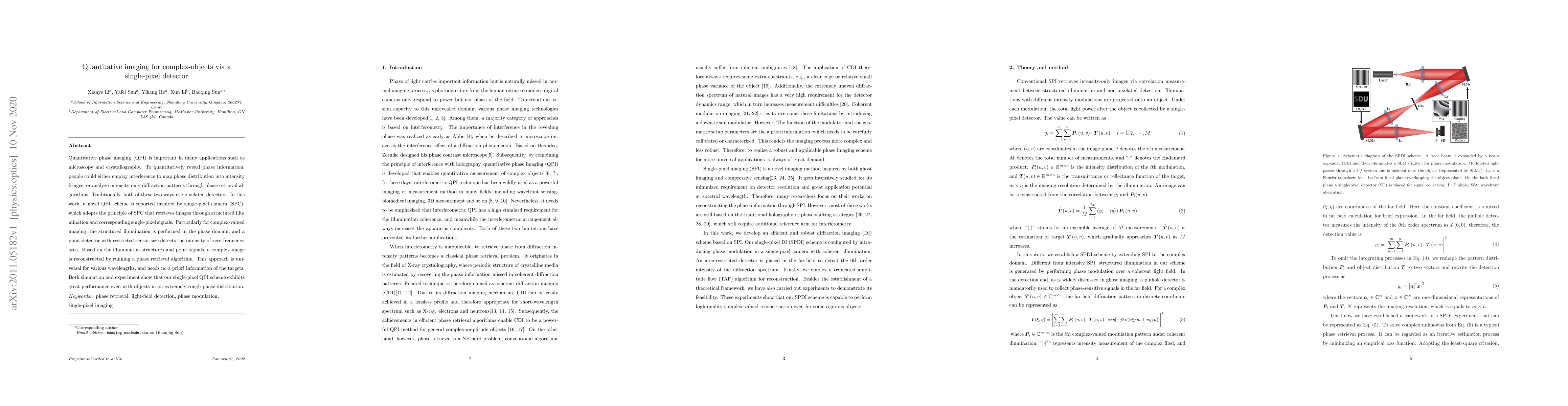 This paper introduces a novel quantitative phase imaging (QPI) method using a single-pixel detector, which retrieves complex-valued images through structured illumination and phase domain processing. The method demonstrates high performance in reconstructing images from single-pixel signals, showing effectiveness across various wavelengths without requiring prior knowledge of the object.