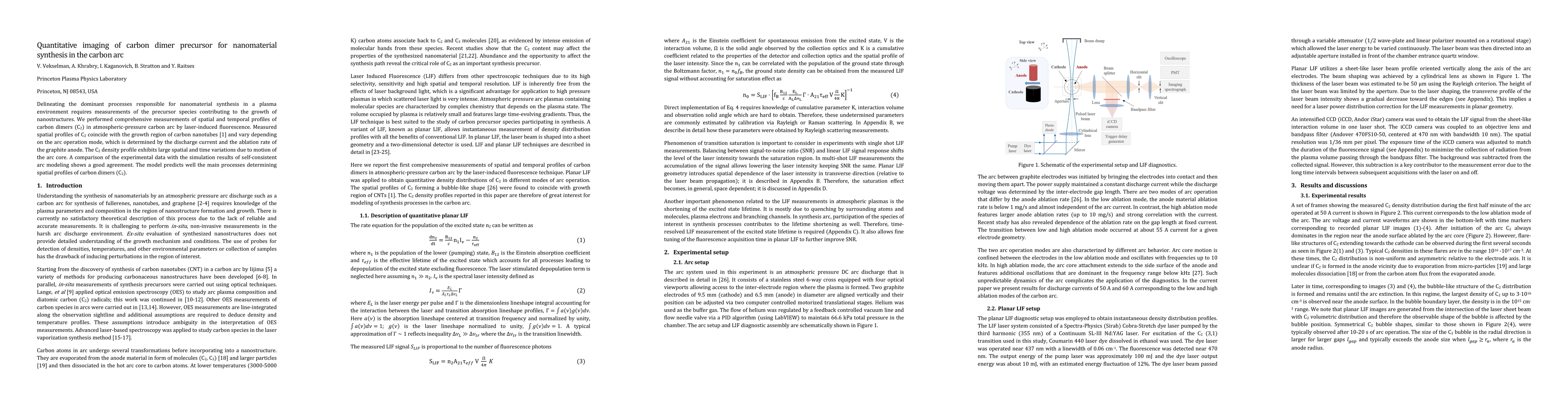 This paper quantitatively measures the spatial and temporal profiles of carbon dimers (C$_2$) in a carbon arc using laser-induced fluorescence, correlating these profiles with the growth region of carbon nanotubes and variations in arc operation modes. The study finds good agreement between experimental data and self-consistent arc modeling simulations, which accurately predict the main processes influencing C$_2$ density.
