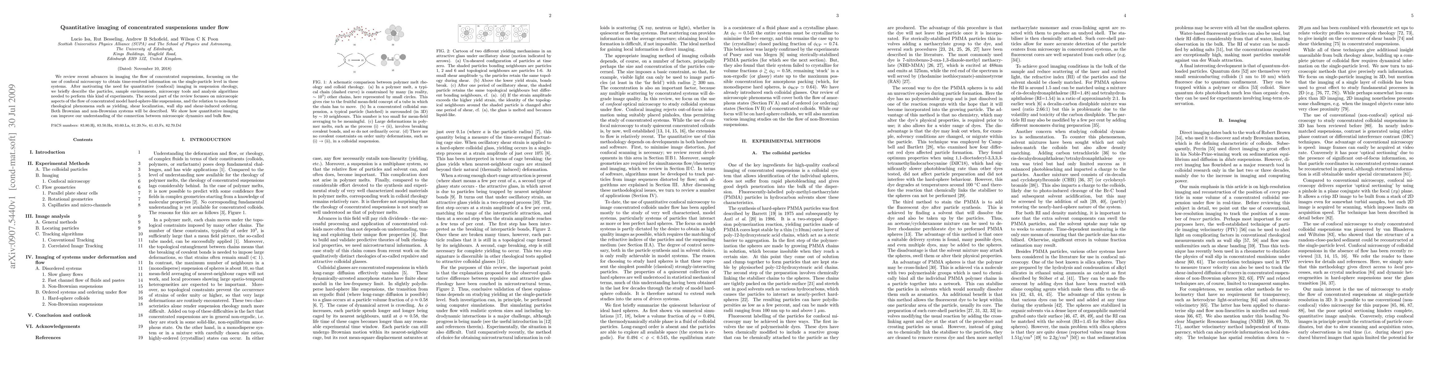 This paper reviews advances in confocal microscopy for imaging concentrated suspensions under flow, emphasizing quantitative imaging to understand single-particle dynamics. It discusses the tools and algorithms needed and explores the microscopic flow behaviors linked to non-linear rheological phenomena.
